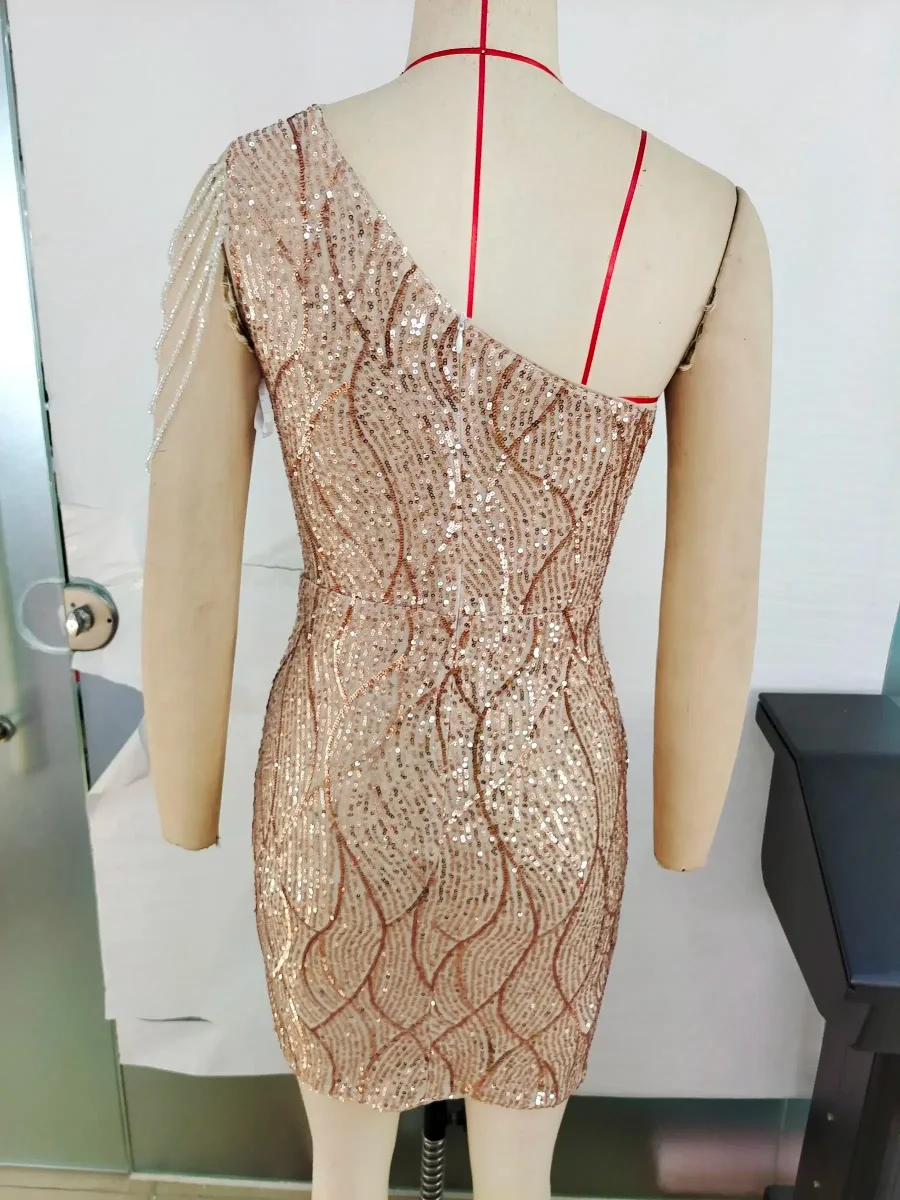 Robe Éclat Pailleté À Épaule Dénudée : Captivez tous les regards