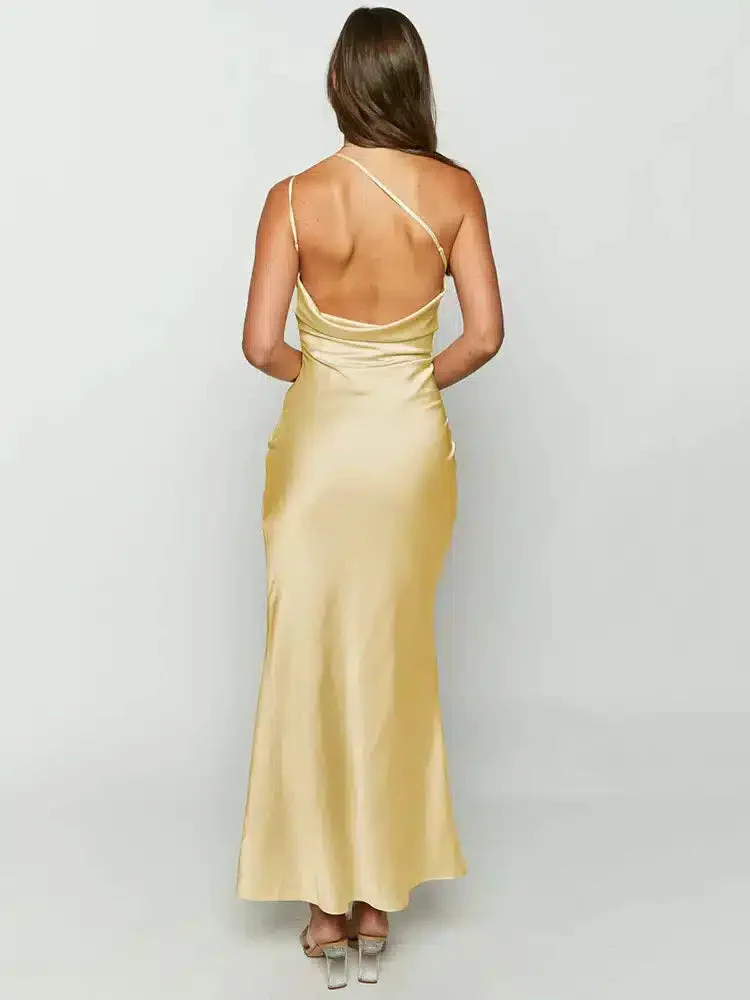 Robe Éclatante Jaune Satinée : L’élégance incarnée pour vos soirées