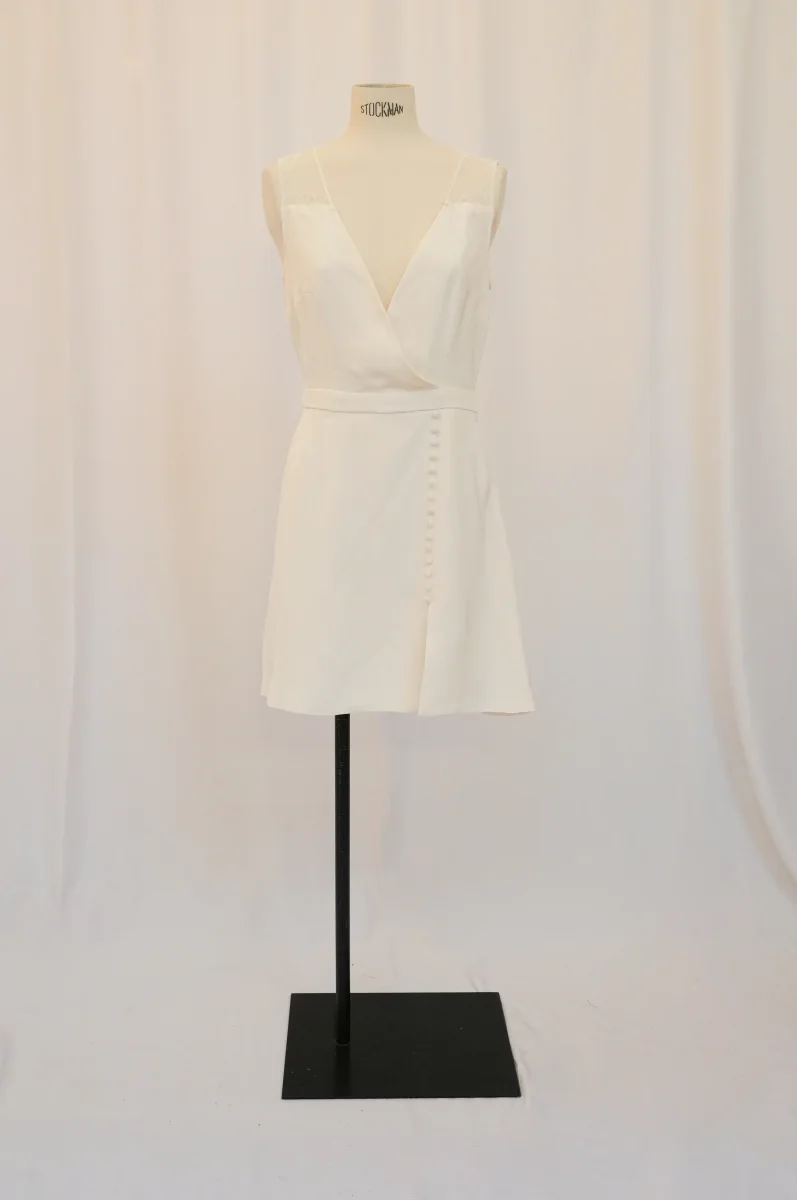 Fabriqué en France ⬇ message alerte ⬇ Attention ! La vente privée se déroule exclusivement en ligne. Aucun essayage n’est possible au showroom. Description Matières : avile et soie Couleur : Blanc Conseils D’entretien Livraison et Retours