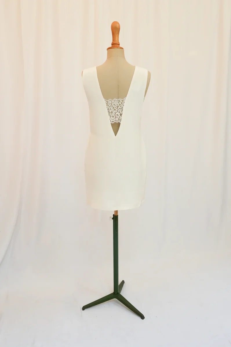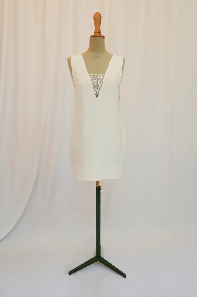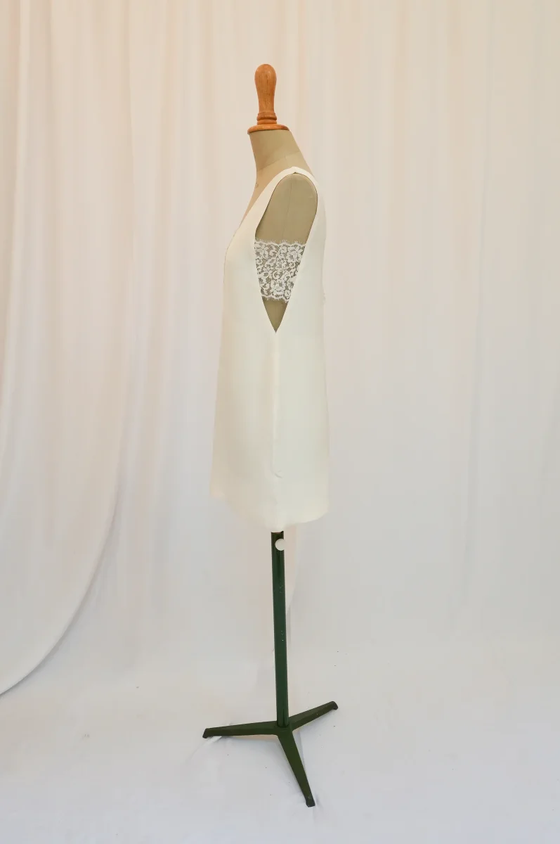 Fabriqué en France ⬇ message alerte ⬇ Attention ! La vente privée se déroule exclusivement en ligne. Aucun essayage n’est possible au showroom. Description Matières : soie et dentelle Couleurs : Blanc Conseils D’entretien Livraison et Retours