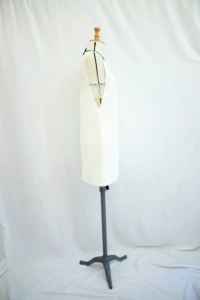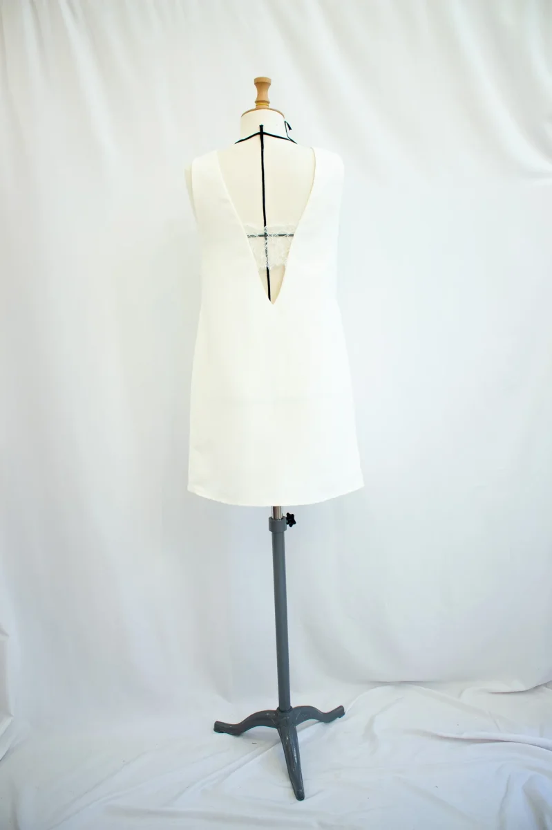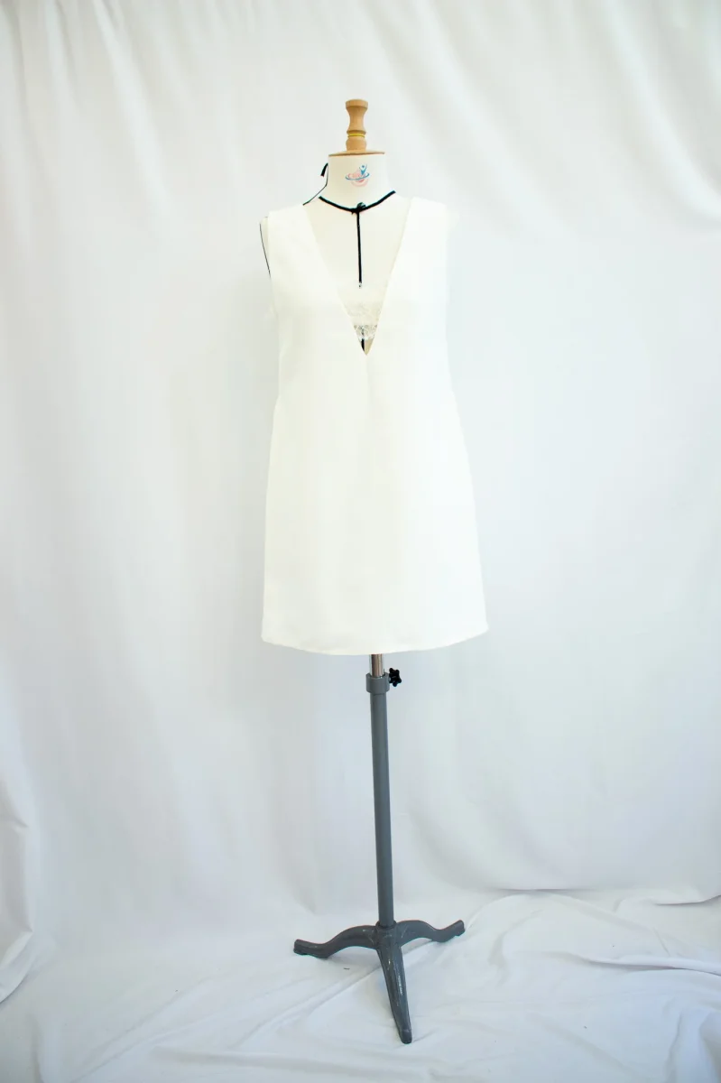 Détails : Robe courte avec bandeau en dentelle au niveau de la poitrine
