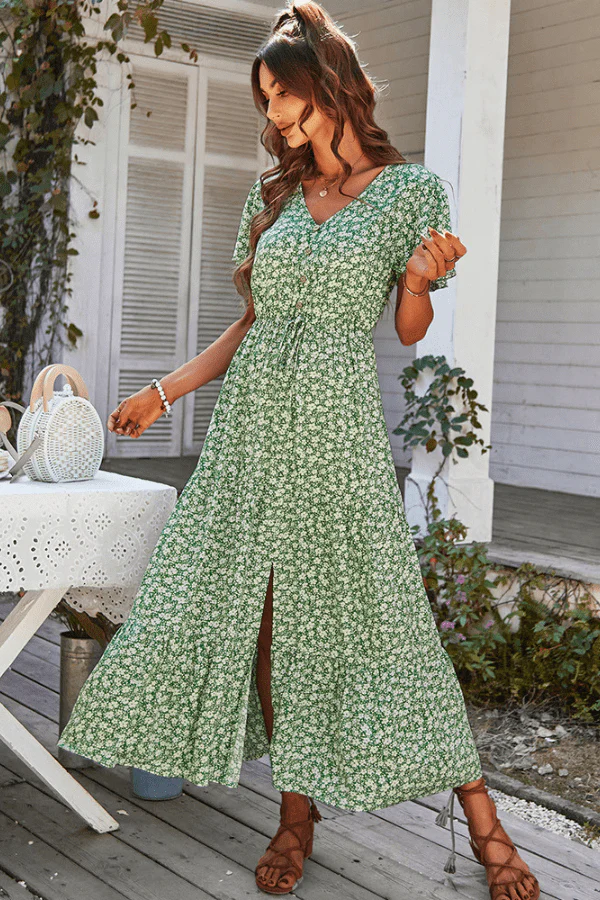 Robe Fleurie Vert Sauge