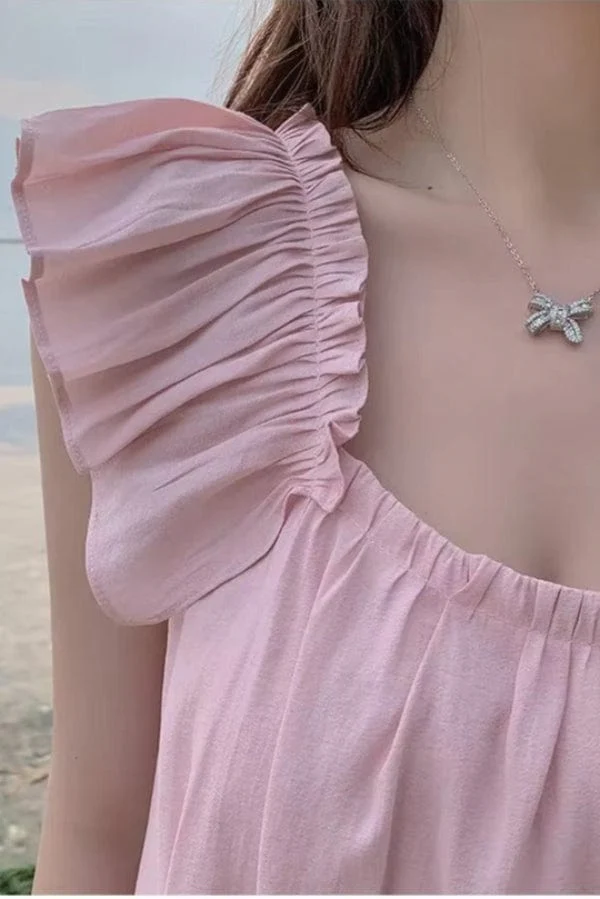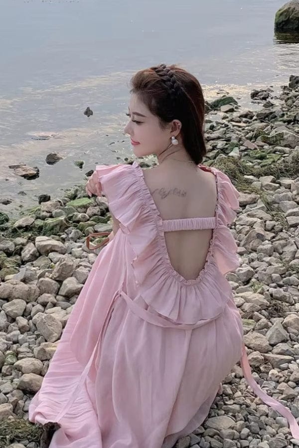 Coupe : Trapèze Matériau : Tissu léger et fluide Design : Dos nu élégant Couleur : Rose poudré Disponible en tailles : S, M, L