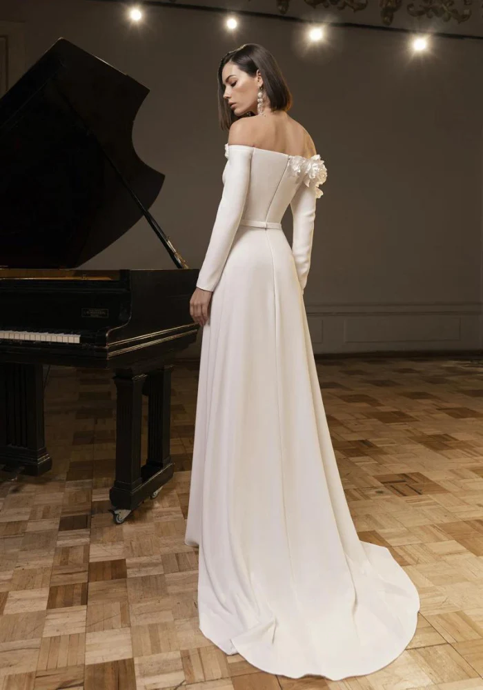 Dès le premier instant, cette création vous enveloppe d’une aura de grâce. Le col bateau épouse délicatement vos épaules, se mariant avec des manches longues pour une allure noble et raffinée. L’audace de la fente haute sur la jambe gauche ajoute une touche de séduction discrète, tandis que la décoration de fleurs en tissu sur l’épaule gauche apporte une dimension poétique unique à l’ensemble. Fabriquée en satin élégant, cette robe promet non seulement un look éblouissant mais aussi une sensation de confort irréprochable.