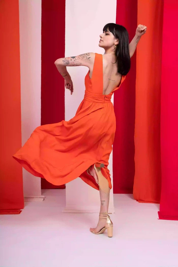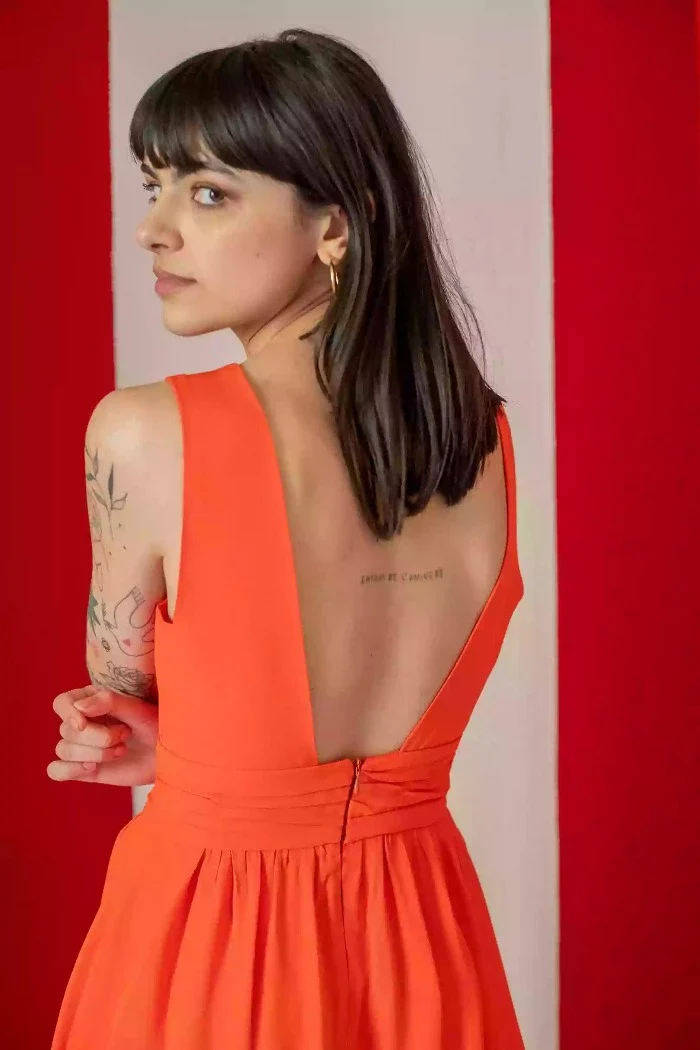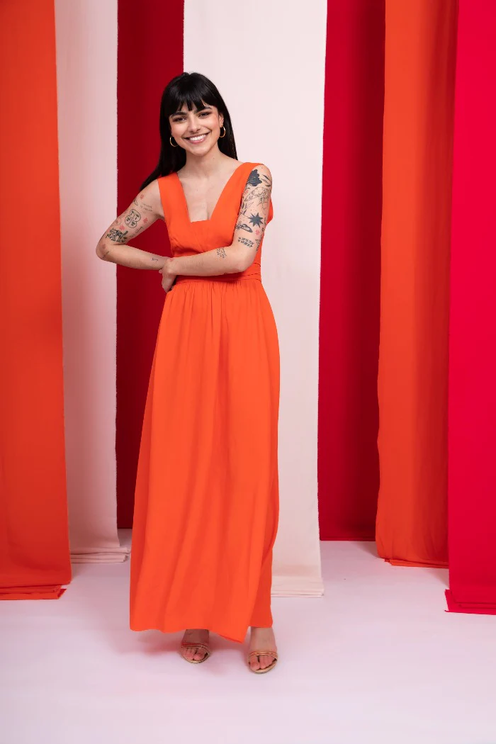 Robe longue sans manches et décolleté dos V profond