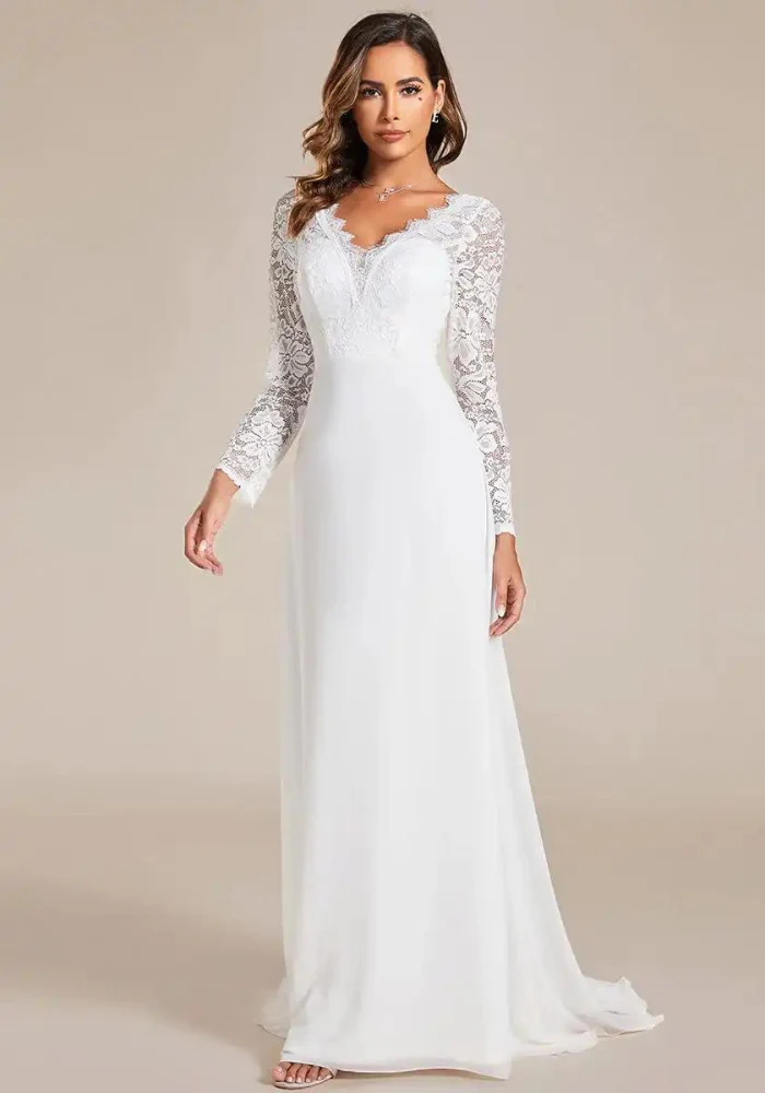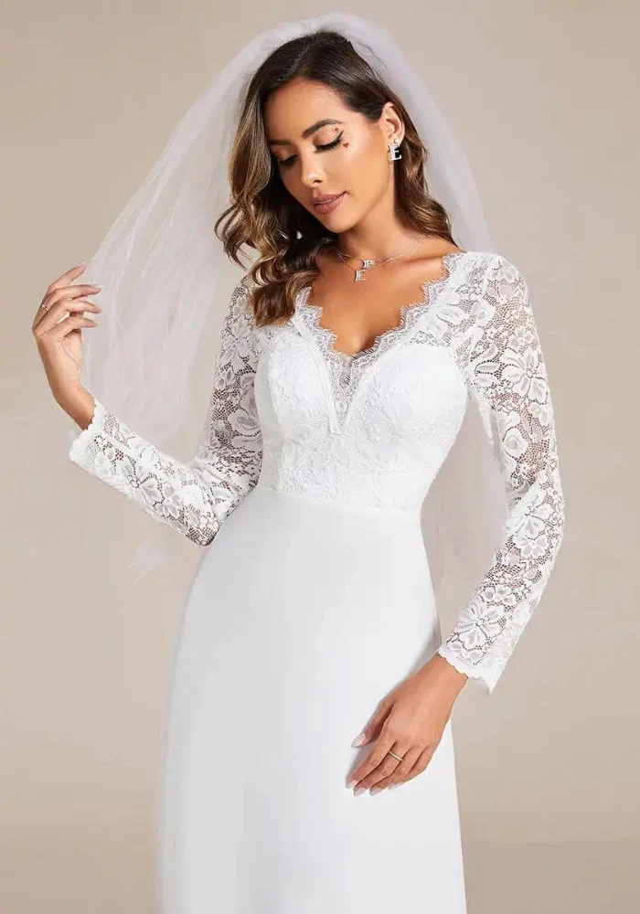 Robe de Mariage Civil Champêtre, Élégance Pure en Dentelle