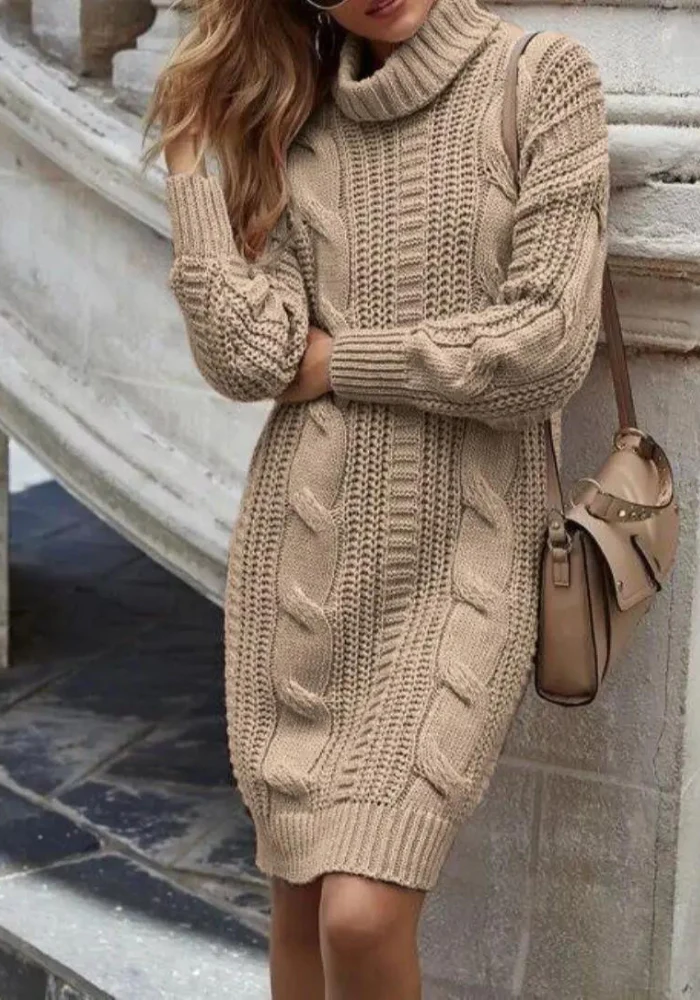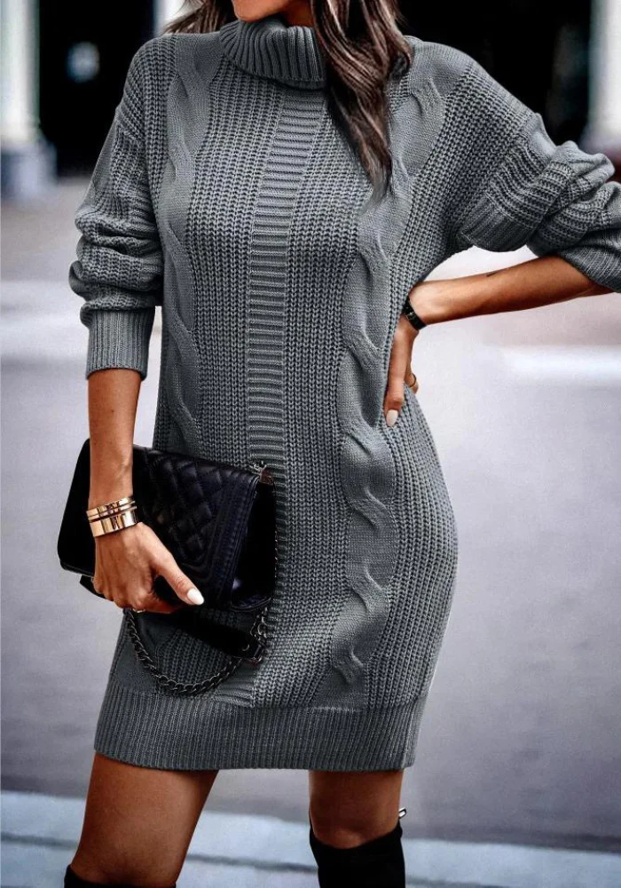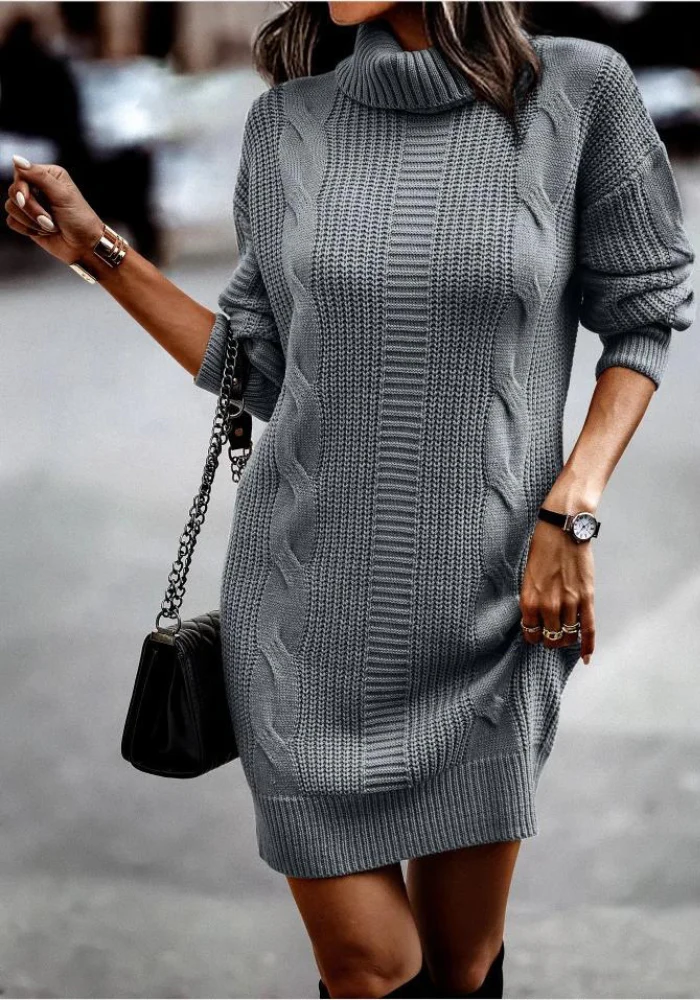 Cette pièce incontournable affiche une coupe près du corps qui met en valeur votre silhouette sans sacrifier le confort. Le col roulé et les manches longues offrent une protection optimale contre le froid, tandis que les motifs de tresses verticales ajoutent une touche chic et texturée. Les finitions côtelées aux poignets et à l’ourlet garantissent une tenue parfaite. Disponible en plusieurs couleurs – noir, bleu, et beige – elle s’adapte à tous les goûts. La qualité du mélange de viscose et polyester assure une douceur exceptionnelle et une durabilité accrue. Adoptez cette robe pour un hiver placé sous le signe de l’élégance confortable.