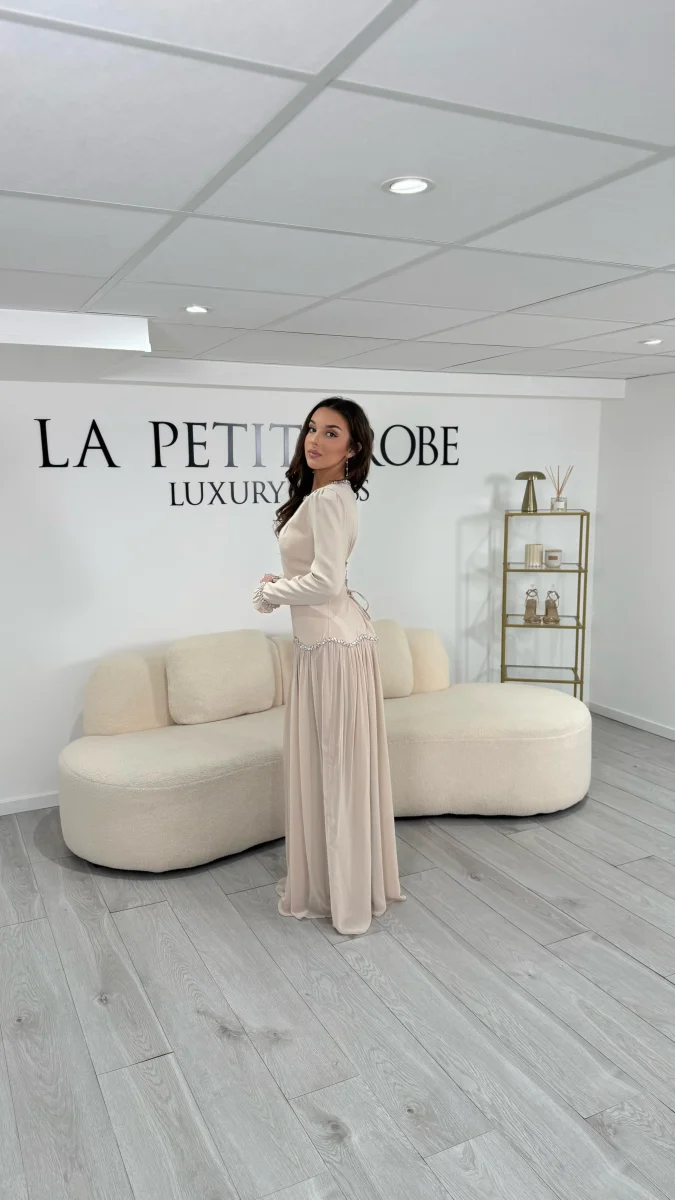 Une robe modeste beige pensée pour les grandes occasions