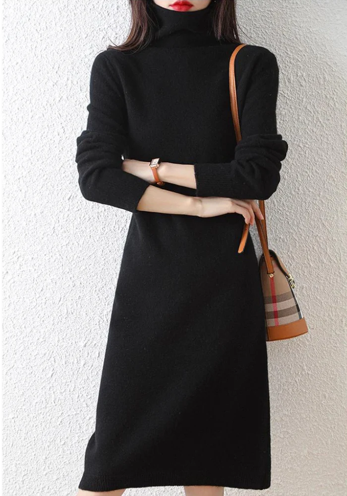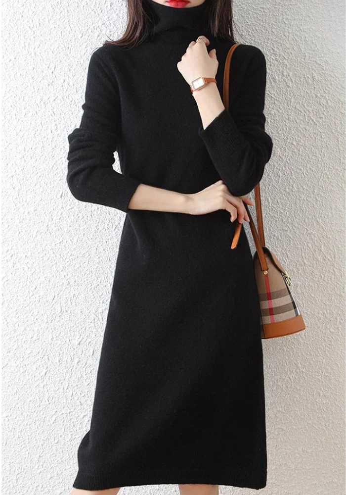 Robe noire hiver col roulé