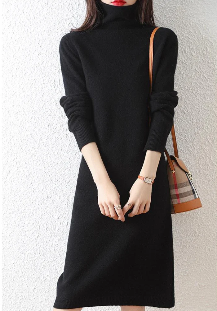 Réchauffez votre style avec la robe noire d’hiver au col roulé