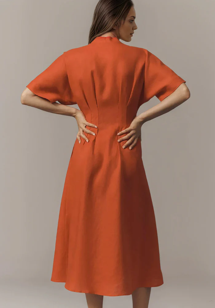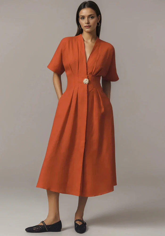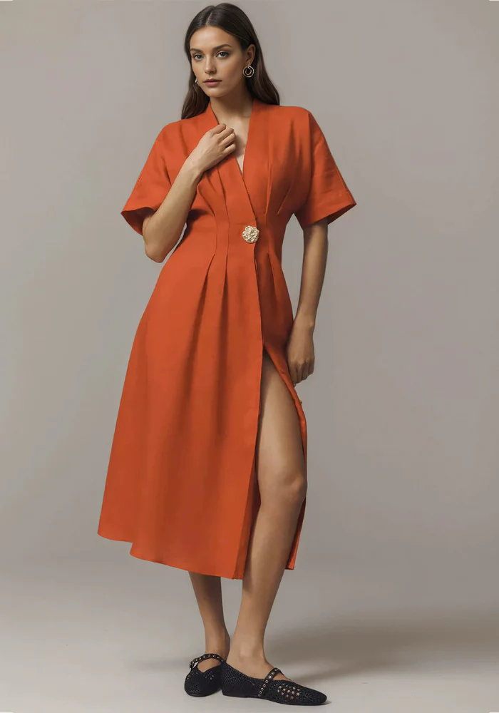Découvrez la robe portefeuille terracotta à l’élégance intemporelle