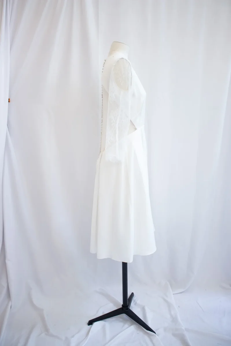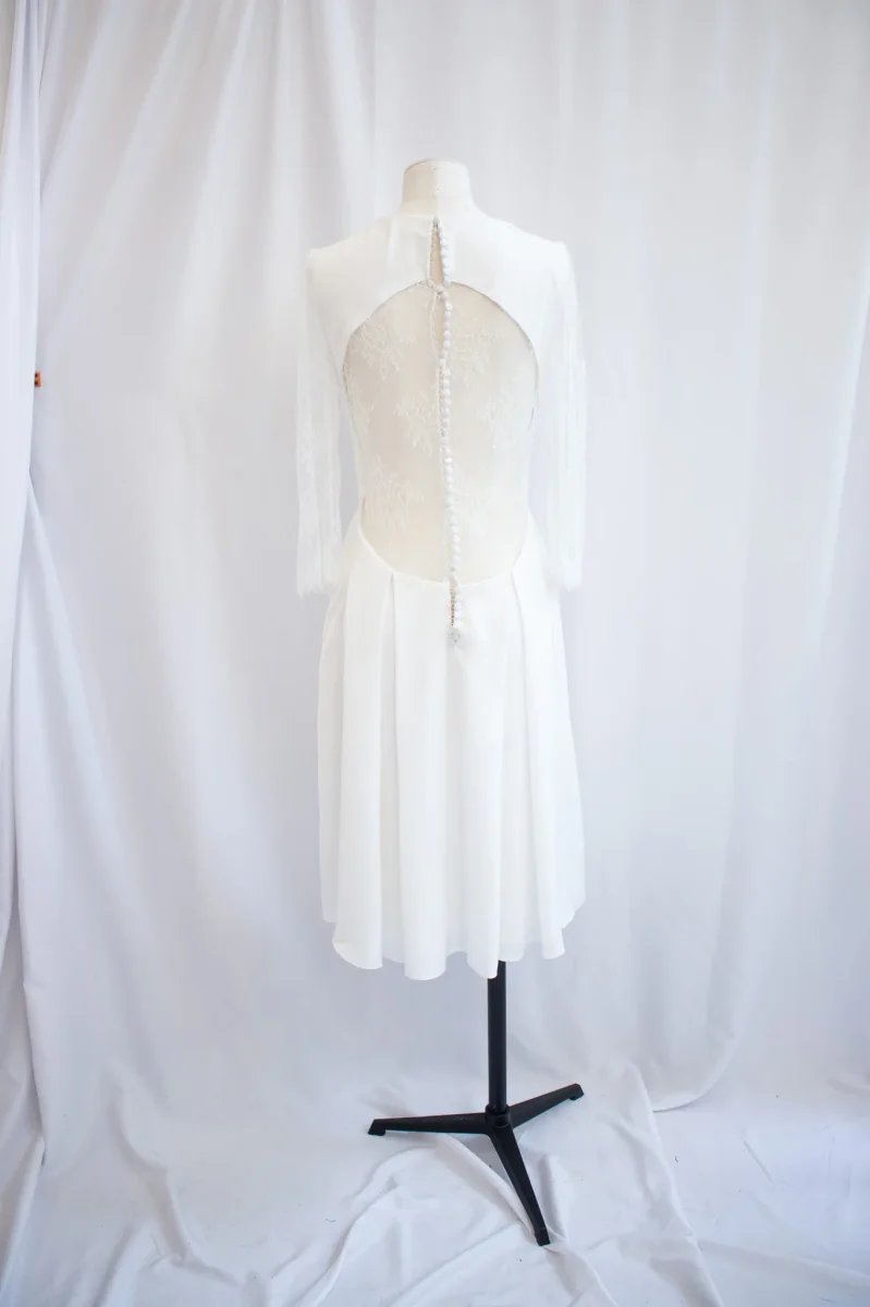 Fabriqué en France ⬇ message alerte ⬇ Attention ! La vente privée se déroule exclusivement en ligne. Aucun essayage n’est possible au showroom. Description Détails : Robe courte dos en dentelle extra plongeant Matières : – Polyester et dentelle Couleurs : – Blanc Conseils D’entretien Livraison et Retours