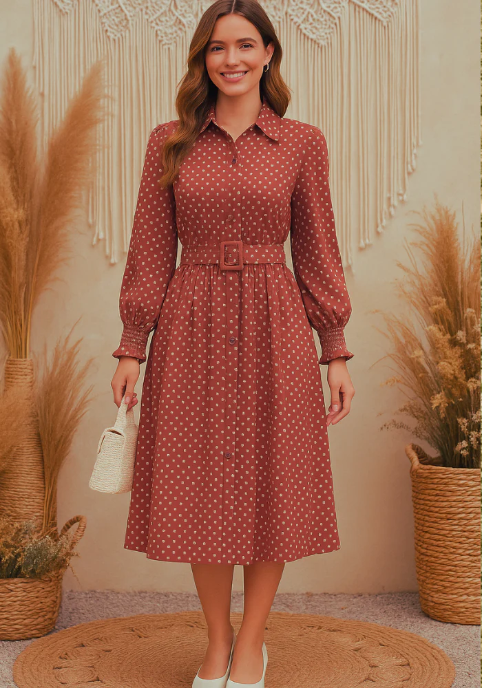 Découvrez la robe rétro terracotta à pois pour un look unique