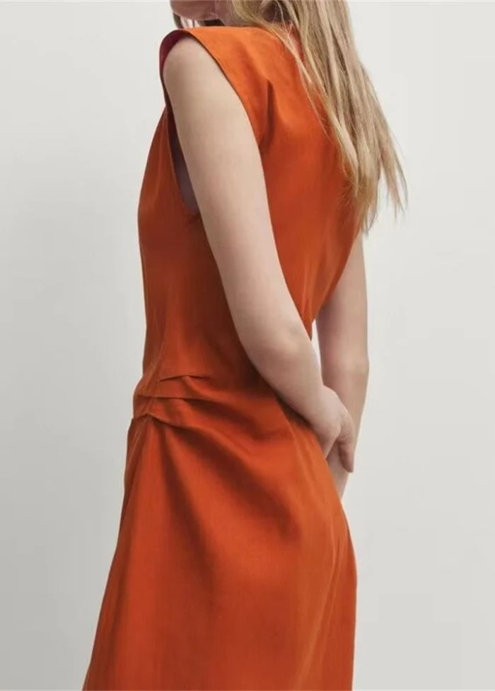 Conçue pour sublimer la silhouette, cette robe sans manches au design minimaliste met en valeur les épaules et s’adapte avec grâce à vos mouvements. Sa matière douce, légèrement satinée, apporte une touche chic et confortable, parfaite pour vos événements de jour comme de nuit.