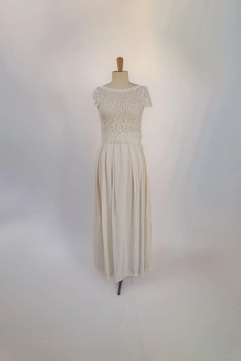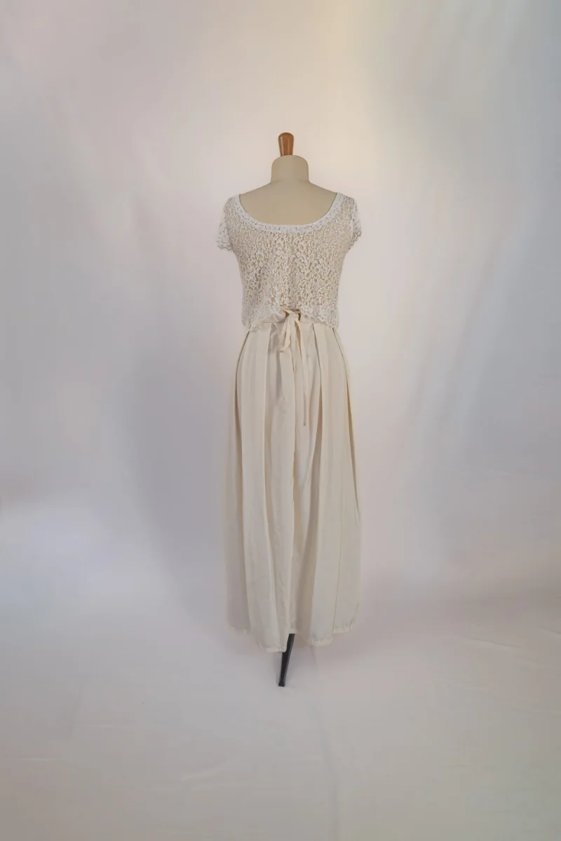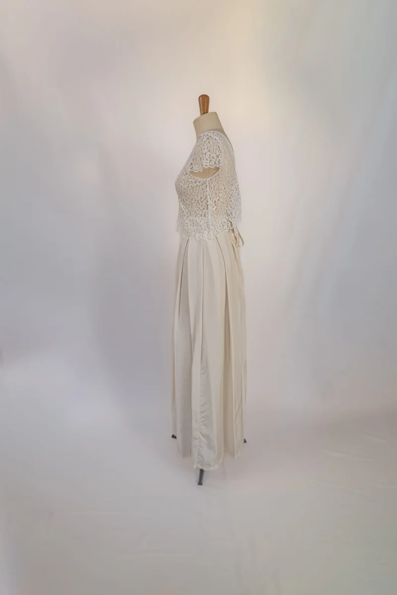 Description Comme beaucoup de mariée, Audrey a beaucoup aimé porter sa robe le jour J. Mais l’idée de faire dormir sa robe dans un placard n’était pas pour elle. C’est pour donner une seconde chance à son ensemble qu’Audrey nous la confié pour qu’il soit reporté par l’une d’entre vous. Caractéristiques : tâches sur la […]