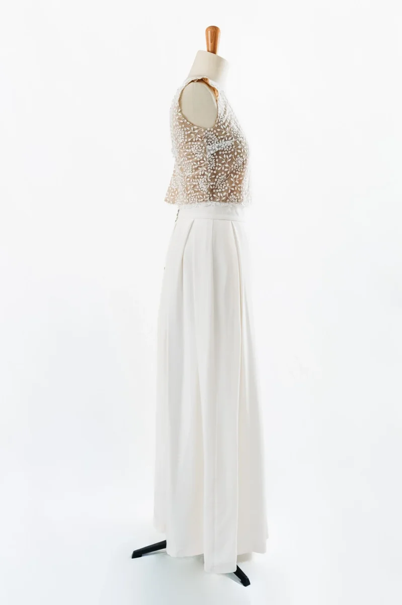 Comme beaucoup de mariée, Audrey a beaucoup aimé porter sa robe le jour J. Mais l’idée de faire dormir sa robe dans un placard n’était pas pour elle. C’est pour donner une seconde chance à son ensemble qu’Audrey nous la confié pour qu’il soit reporté par l’une d’entre vous.