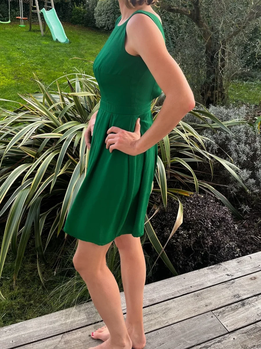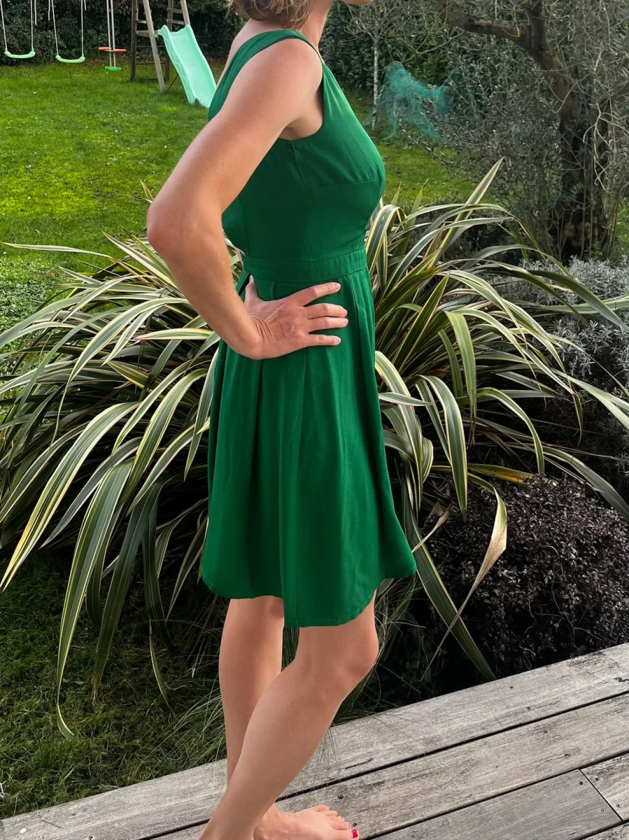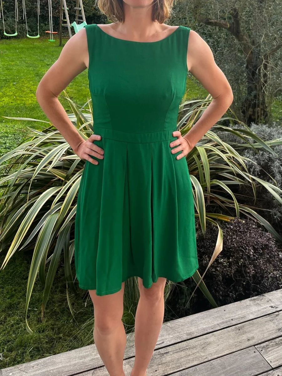 Découvrez cette jolie robe de seconde main L’Amusée, un modèle élégant et raffiné qui fera sensation en tant que robe de témoin ou robe d’invitée pour un mariage ou un événement spécial. Cette robe en couleur vert émeraude est une pièce unique qui capte tous les regards. Le modèle « Attachante » en polyester vert émeraude se distingue ici par sa version sans manches et sa jupe à plis, offrant une silhouette fluide et sophistiquée. Cette robe, taille 40, est neuve et n’a jamais été portée, ce qui en fait une véritable trouvaille pour celles qui recherchent une robe élégante à prix tout doux.