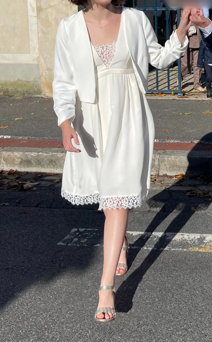 Veste courte esprit boléro, sans col, pensée pour souligner la silhouette avec délicatesse.