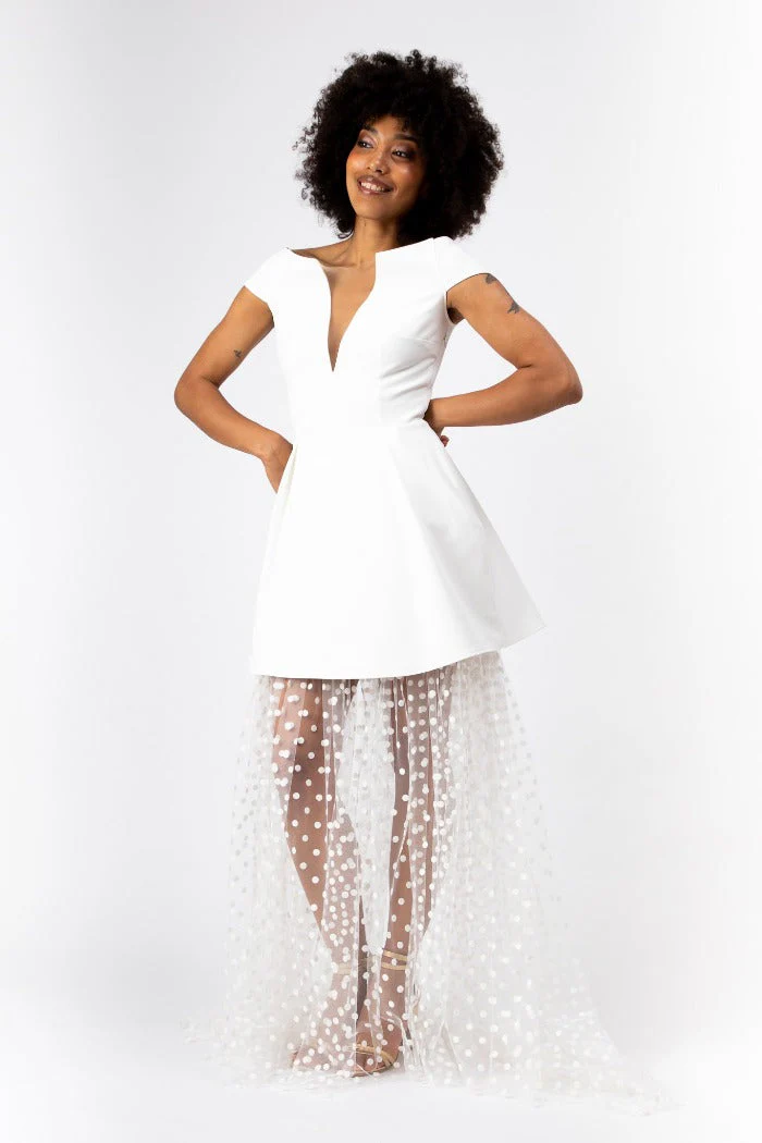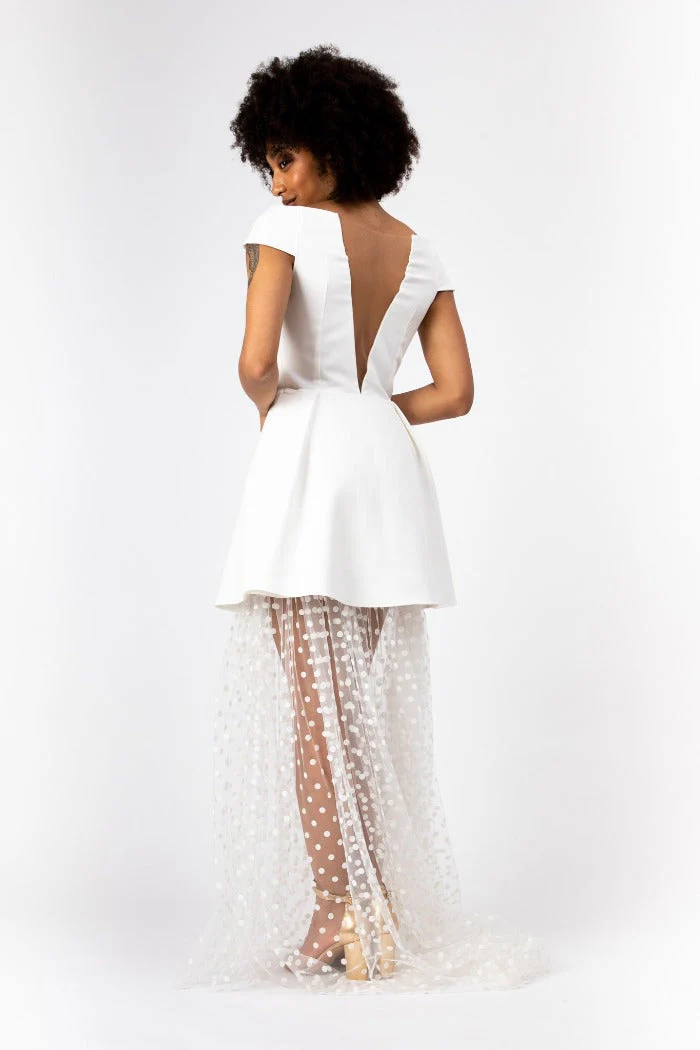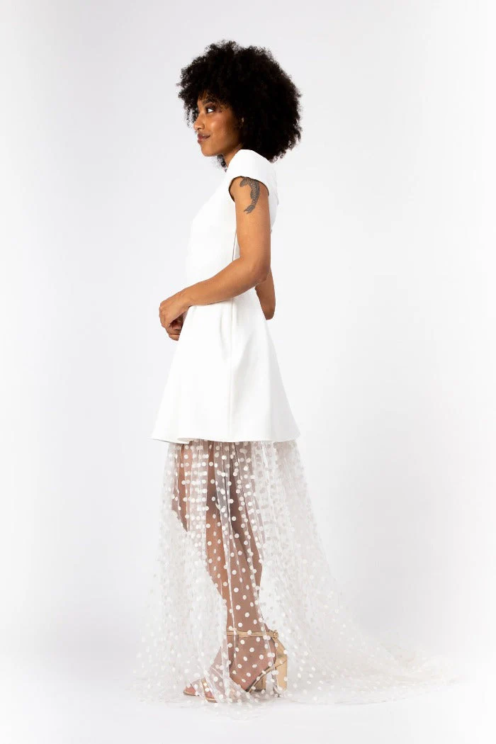 Sous-jupe longue à traine en plumetis all over pour transformer n’importe quelle robe courte en magnifique robe de cérémonie