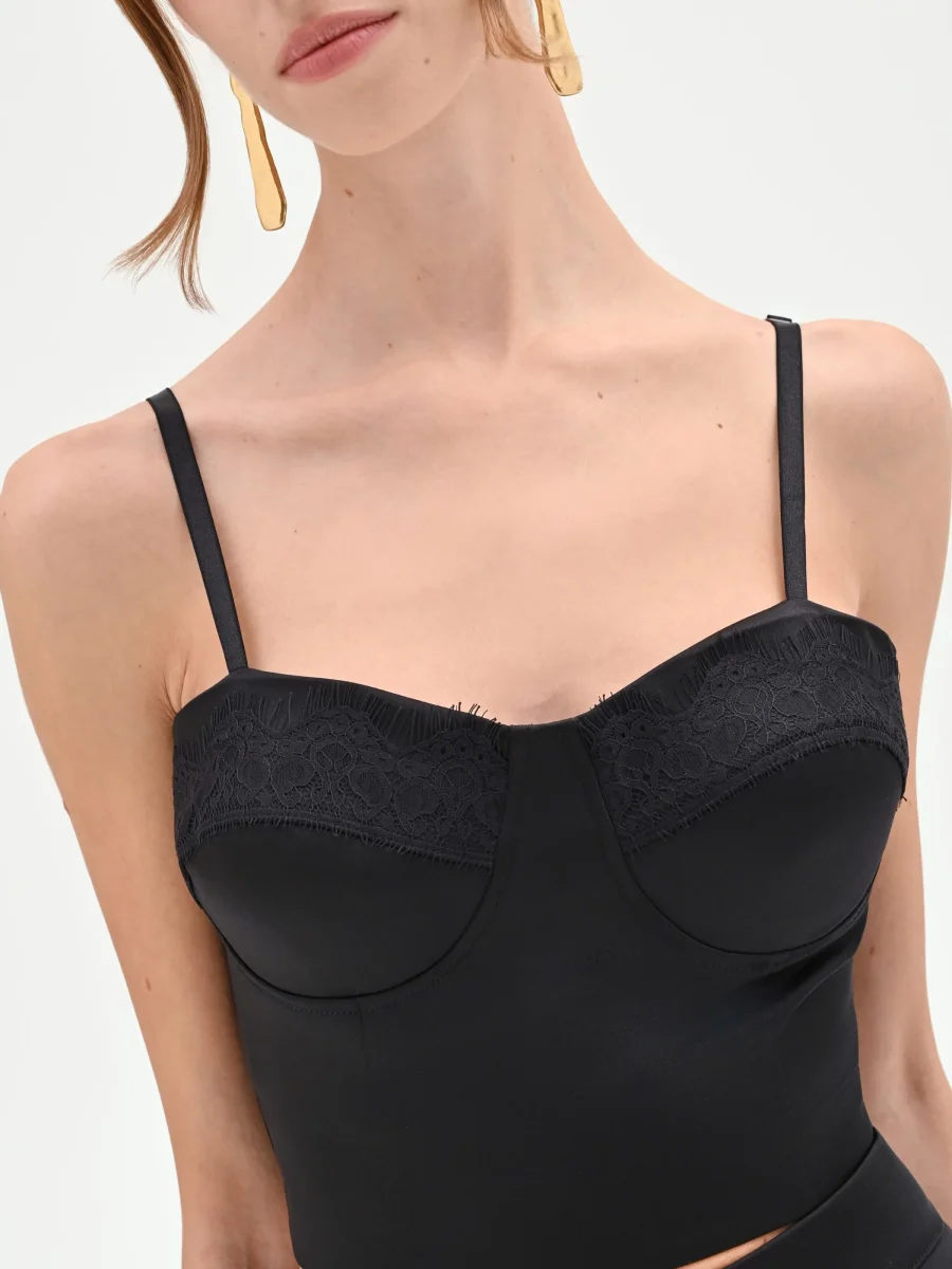 Top bustier nero con profili in pizzo