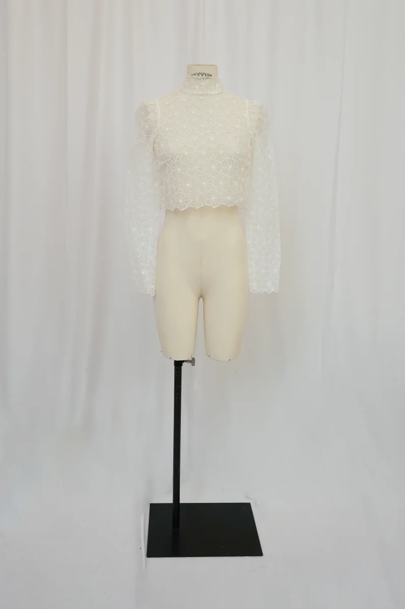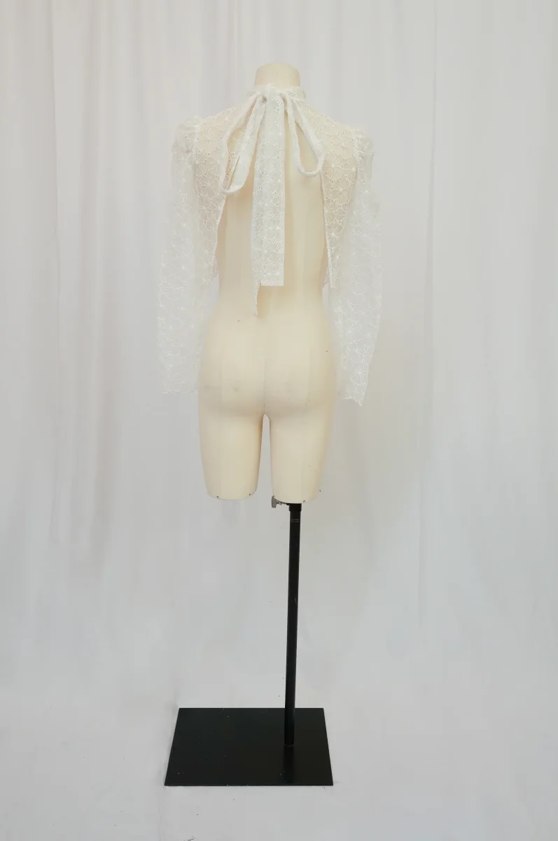 Fabriqué en France ⬇ message alerte ⬇ Attention ! La vente privée se déroule exclusivement en ligne. Aucun essayage n’est possible au showroom. Description Matières : Organa brodé Couleurs : Blanc Conseils D’entretien Livraison et Retours
