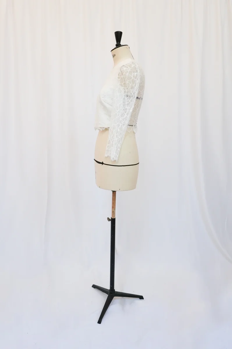 Fabriqué en France ⬇ message alerte ⬇ Attention ! La vente privée se déroule exclusivement en ligne. Aucun essayage n’est possible au showroom. Description Matières : polyester et dentelle Couleur : Blanc Conseils D’entretien Livraison et Retours