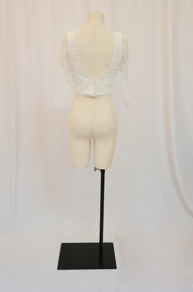 Fabriqué en France ⬇ message alerte ⬇ Attention ! La vente privée se déroule exclusivement en ligne. Aucun essayage n’est possible au showroom. Description Matières : dentelle et polyester Couleur : Blanc Conseils D’entretien Livraison et Retours