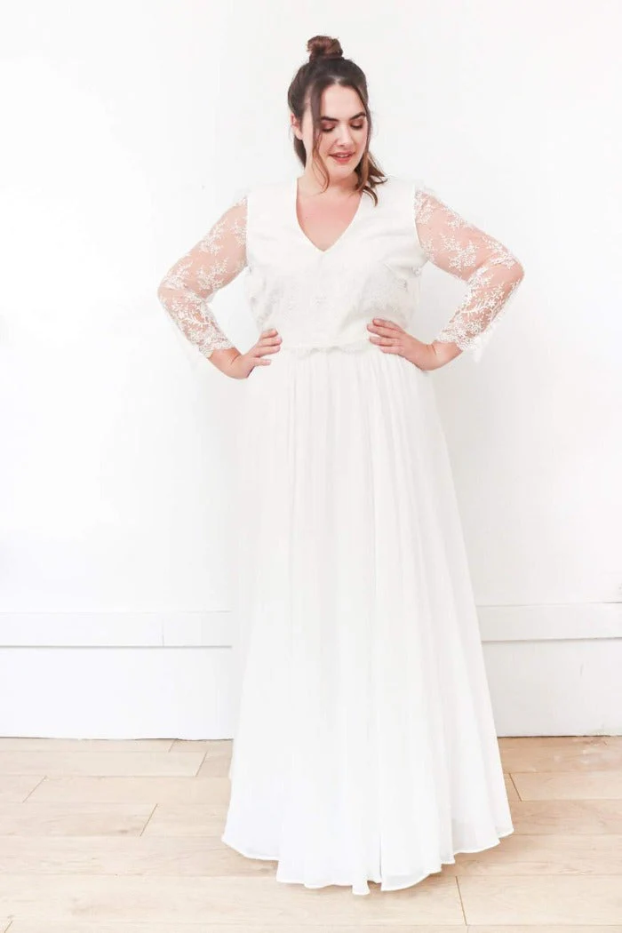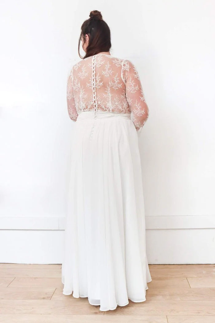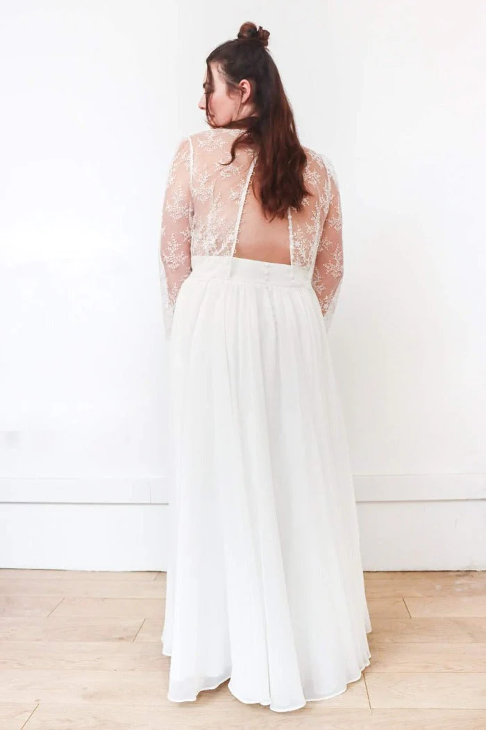 🇫🇷 Fabriqué en France 🇫🇷 – à partir de :-> Sur-mesure : Top 600€ / Jupe 1350€ / Ensemble 1950€-> Prêt à porter (en ligne) : Top 360€ / Jupe 640€ / Ensemble 1000€ ⬇ message alerte ⬇ Jupe Seule ICI Ensemble ICI Description Top dentelle, col V, dos transparent et boutonné, manches 3/4. Tissu […]