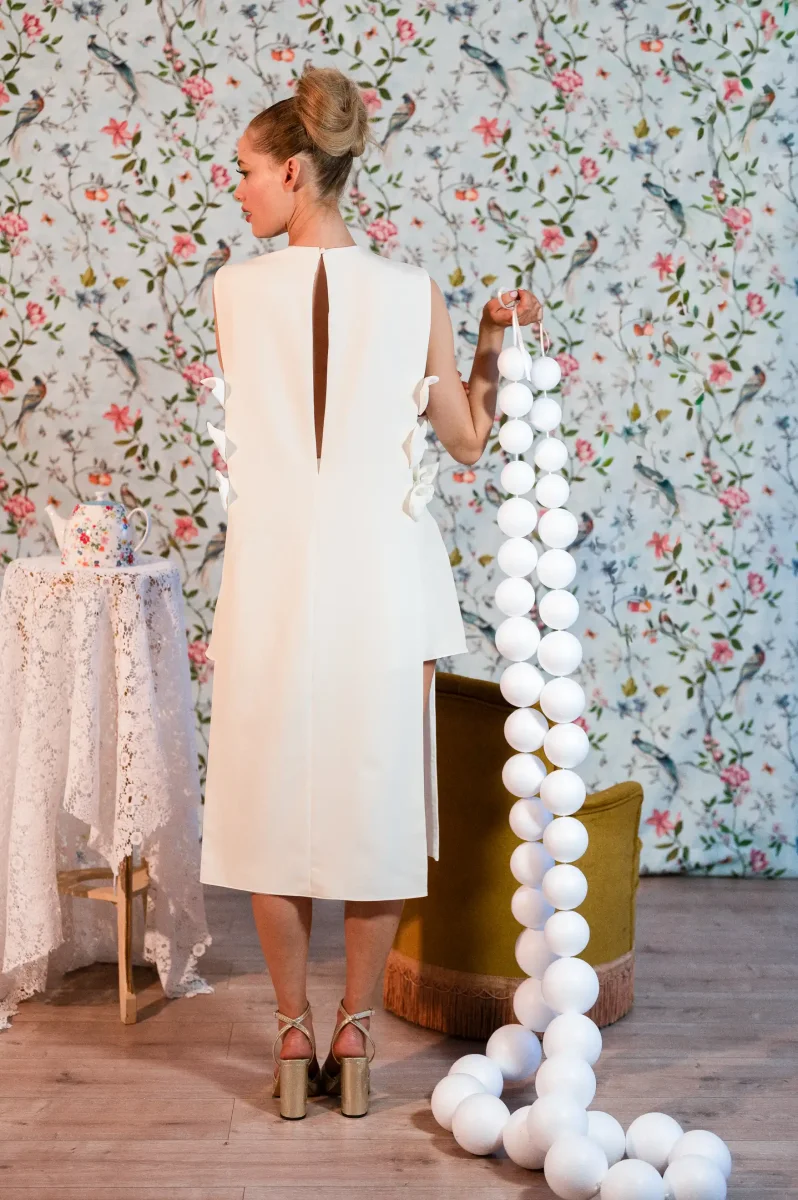 Les détails qui font tout : Top long sans manches à la coupe droite, tombant à mi-mollet Noeuds délicatement placés sur les côtés