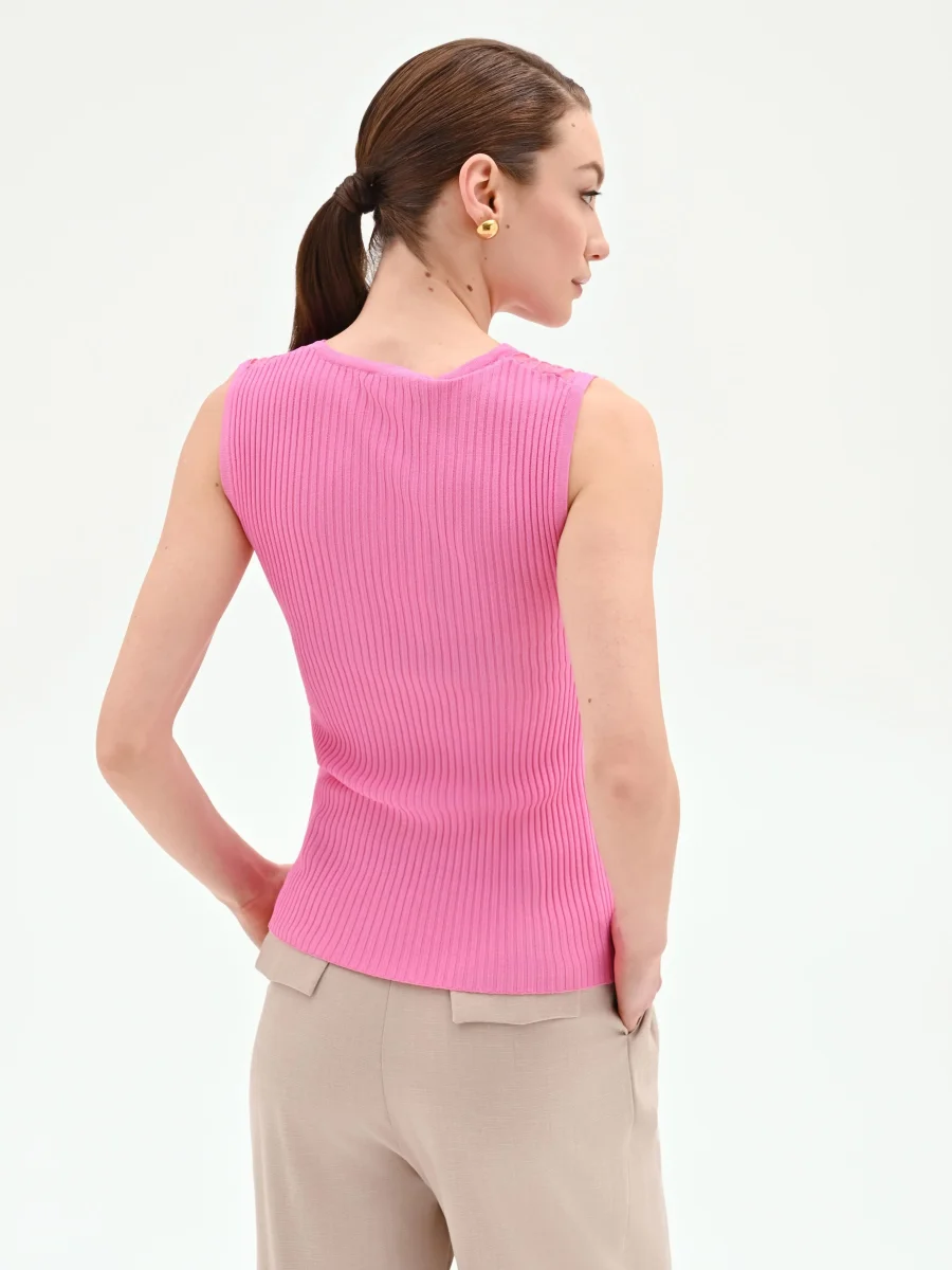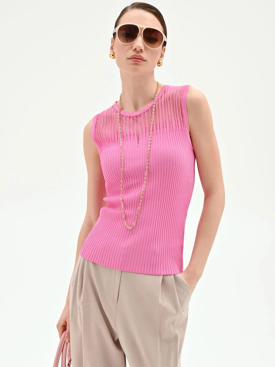 Un equilibrio perfetto tra comfort quotidiano e dettagli ricercati, il top rosa in maglia a costine è il capo chiave per dare un tocco di colore e femminilità al guardaroba di stagione. La sua versatilità lo rende un alleato prezioso per creare look sempre nuovi e personali, dal giorno alla sera.