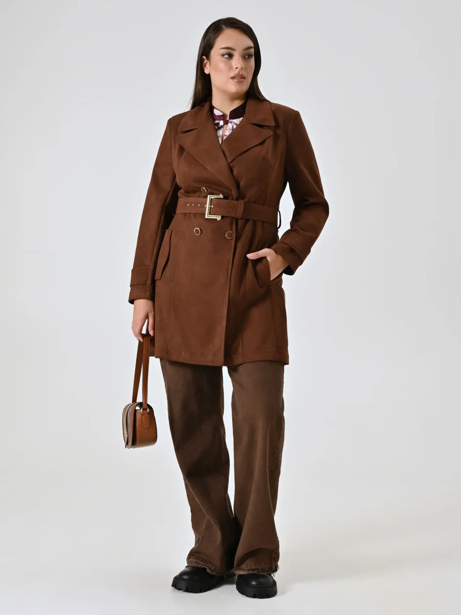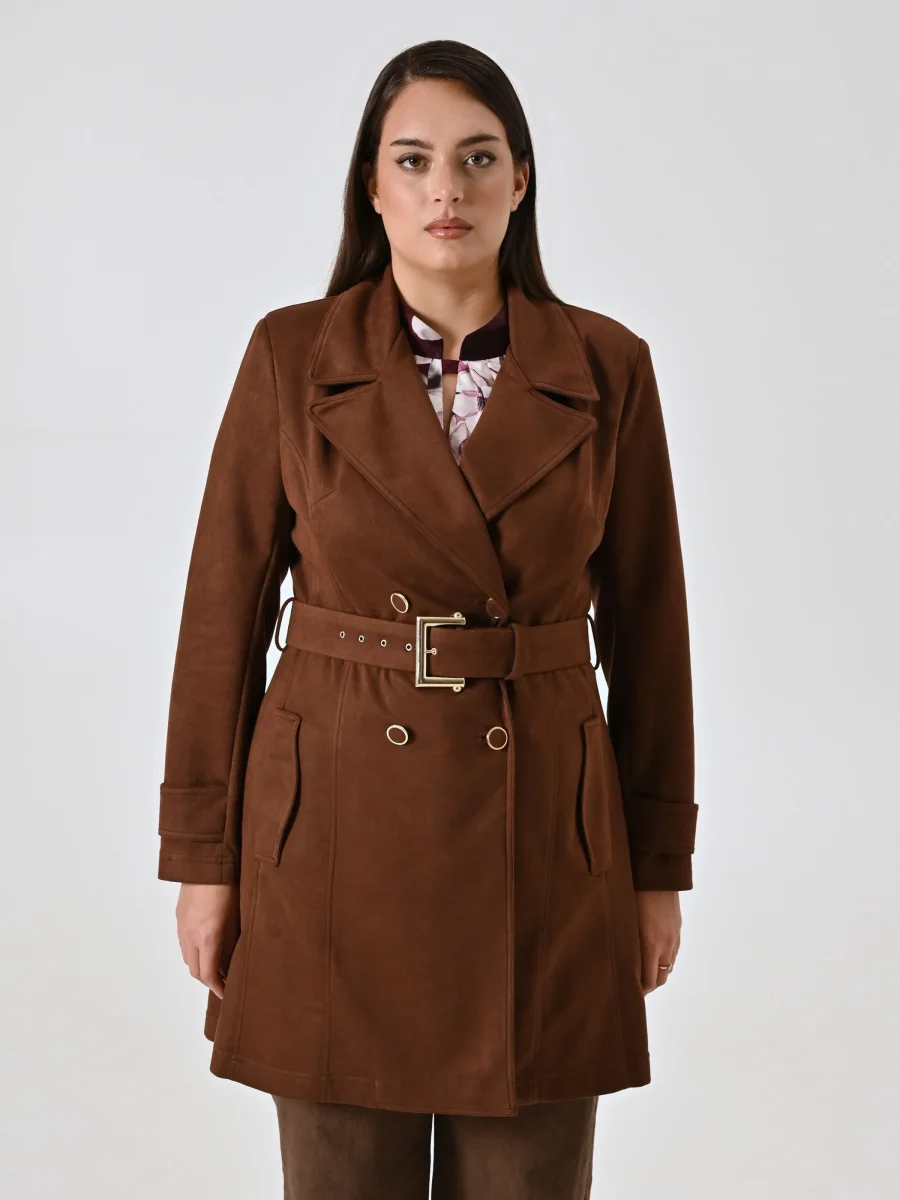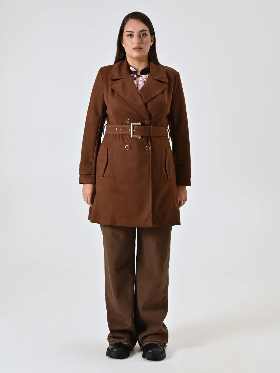Trench Curvy effetto Camoscio