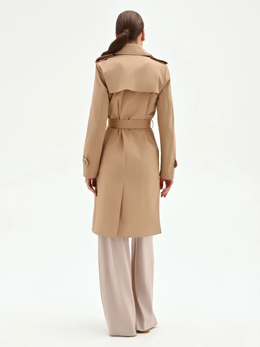 Trench doppiopetto beige con cintura