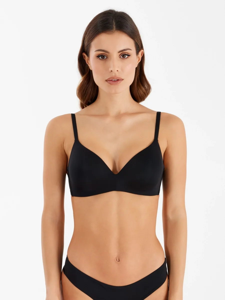 Triangolo senza ferretto realizzato con morbide coppe imbottite preformate e brillante microfibra . Uno straordinario effetto “balconcino” pur senza il supporto del ferretto grazie alla forma della coppa che è un tutt’uno con il sottoseno. Cuciture insaccate in tutto il capo(fusti doppi in microfibra) donano un effetto Invisibile sotto agli abiti ed eccezionale comfort. Spalline ricoperte in microfibra, stecche laterali invisibili all’esterno, gancio a 4 posizioni completano le caratteristiche speciali di questo capo. Il reso dei collant e dell’intimo è possibile solo a condizione che la relativa confezione non sia stata aperta o manomessa e che, quindi, risulti integra.