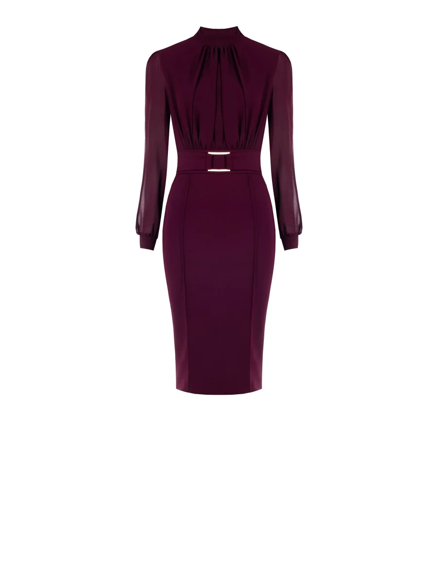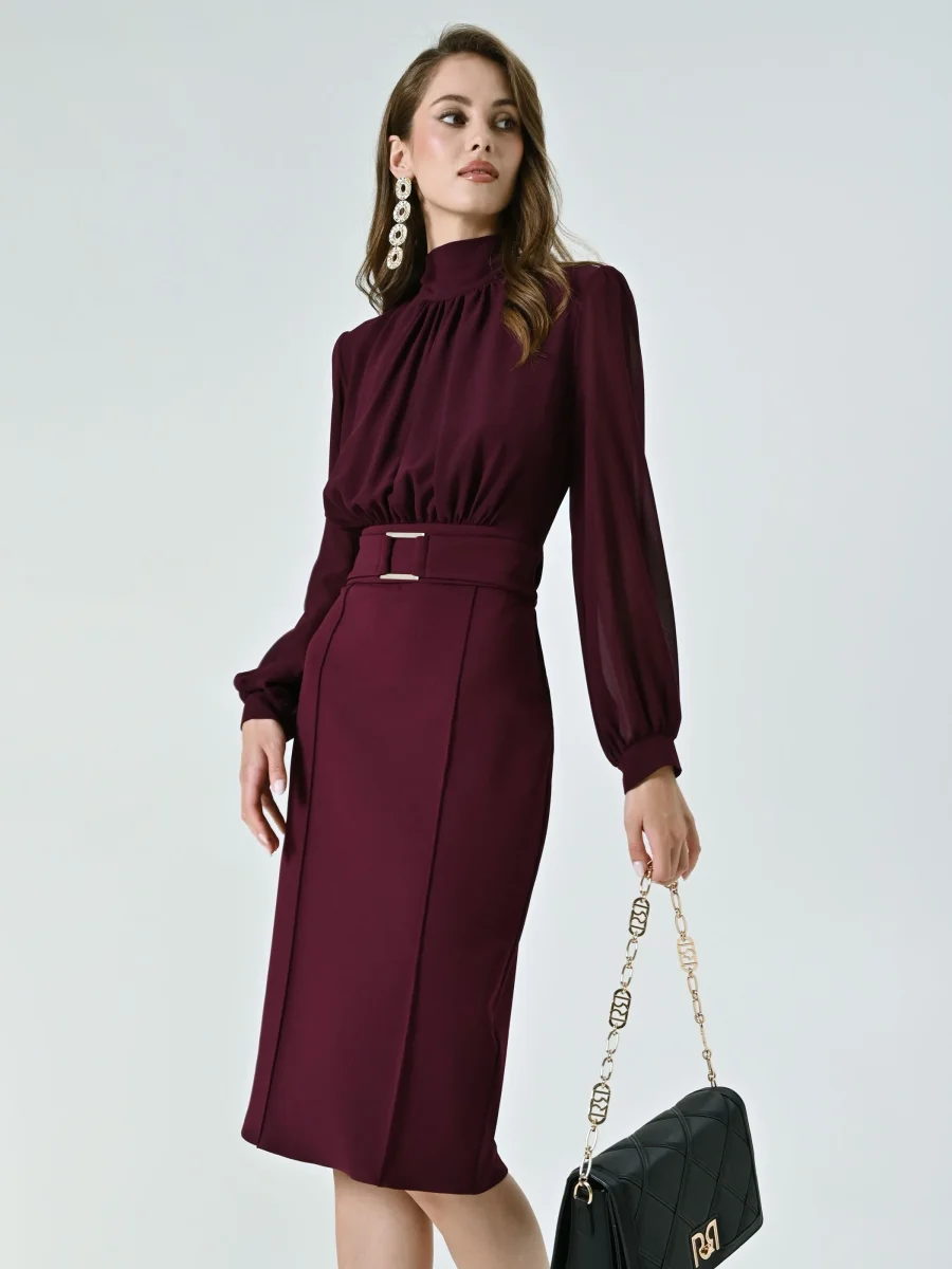 Il Tubino con Fibbia Geometrica è un modello raffinato che unisce linee pulite e dettagli distintivi, ideale per valorizzare la silhouette con eleganza. Composto da una blusa in georgette e una gonna in scuba mano crepe, il Tubino con Fibbia Geometrica è caratterizzato da maniche lunghe, collo in piedi, corpino drappeggiato e polsini camicia. L’inserto in vita con fibbia geometrica, fissa e non removibile, aggiunge un accento moderno, mentre la chiusura con zip posteriore e bottoncino assicura una vestibilità comoda e precisa. Il Tubino con Fibbia Geometrica si completa alla perfezione con calzature e accessori di collezione. Indossalo per la laurea, in ufficio o per una cerimonia, interpretandolo a seconda delle esigenze. Per un fit impeccabile scegli la collezione Lingerie Rinascimento.