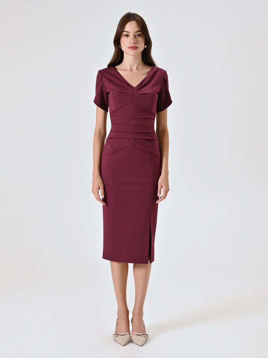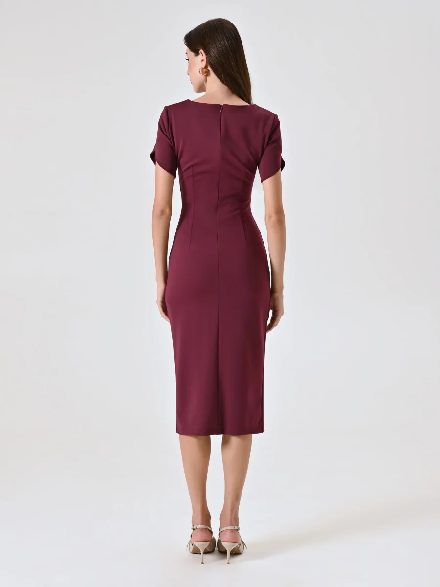 Tubino Bordeaux con Pieghe Cucite effetto Drappeggio