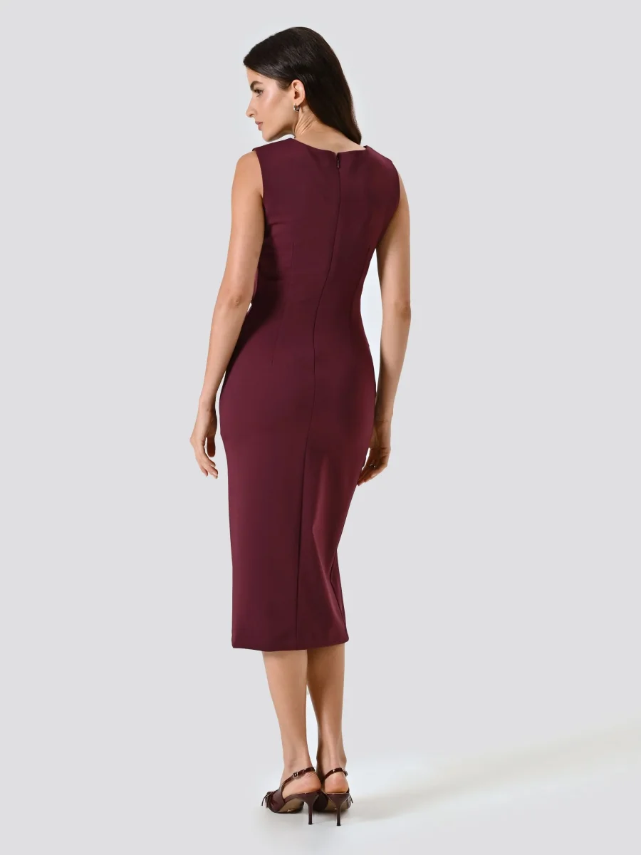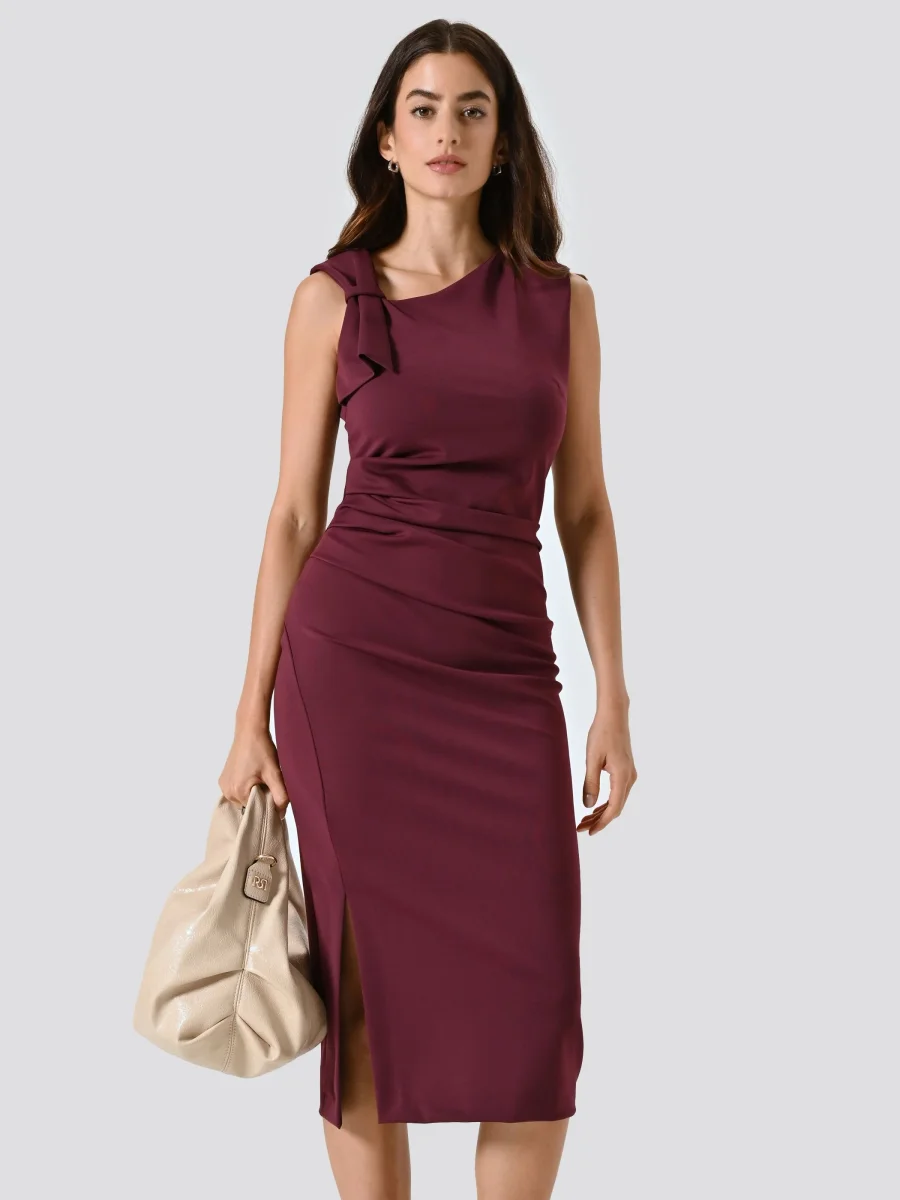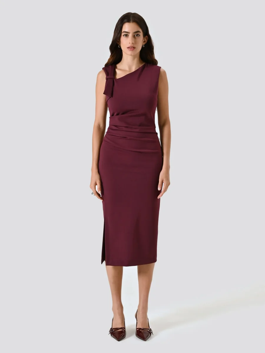 Tubino Midi con Fiocco in Punto Milano Bordeaux