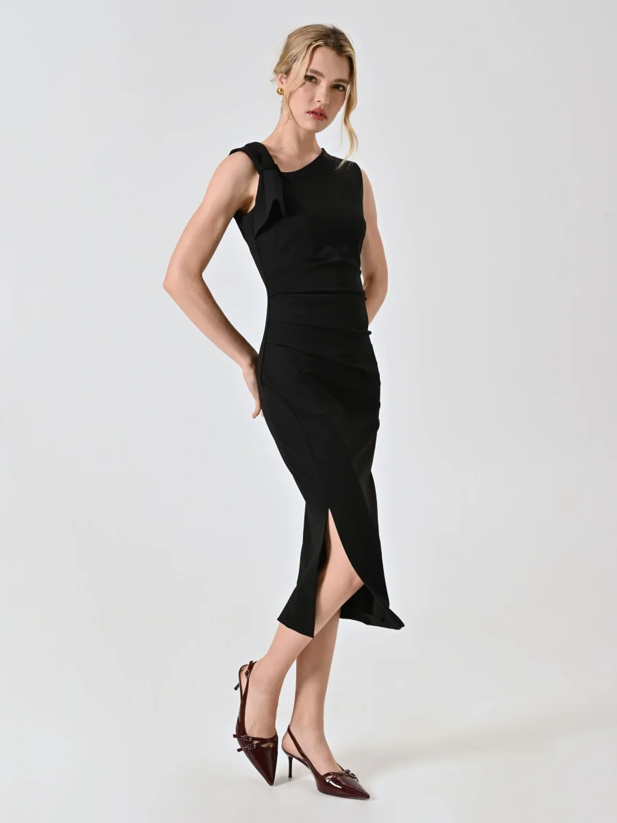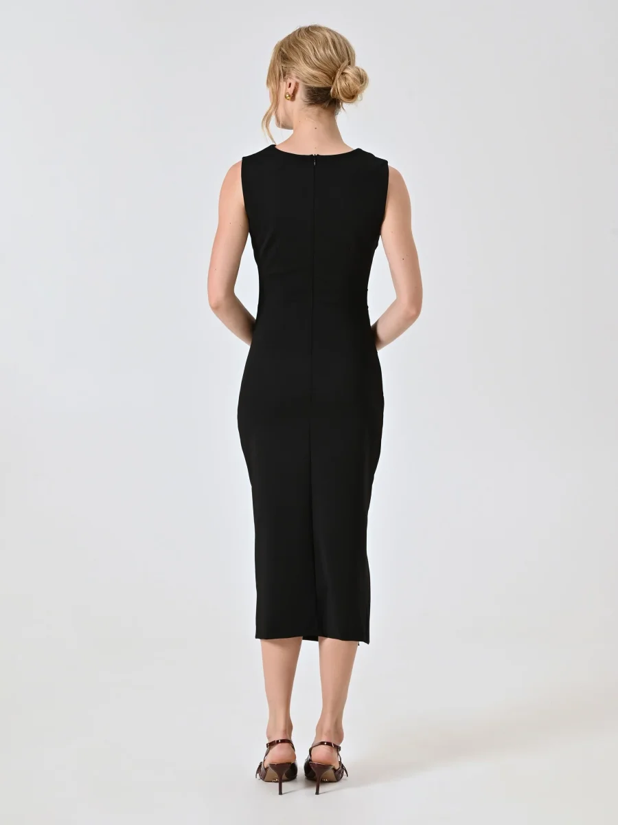Abito a tubino nero in punto milano con drappeggio