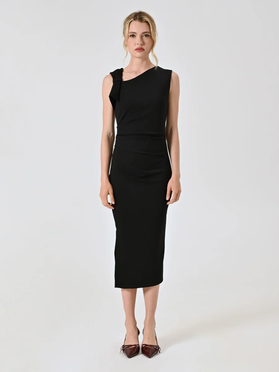 Tubino Midi con Fiocco in Punto Milano Nero