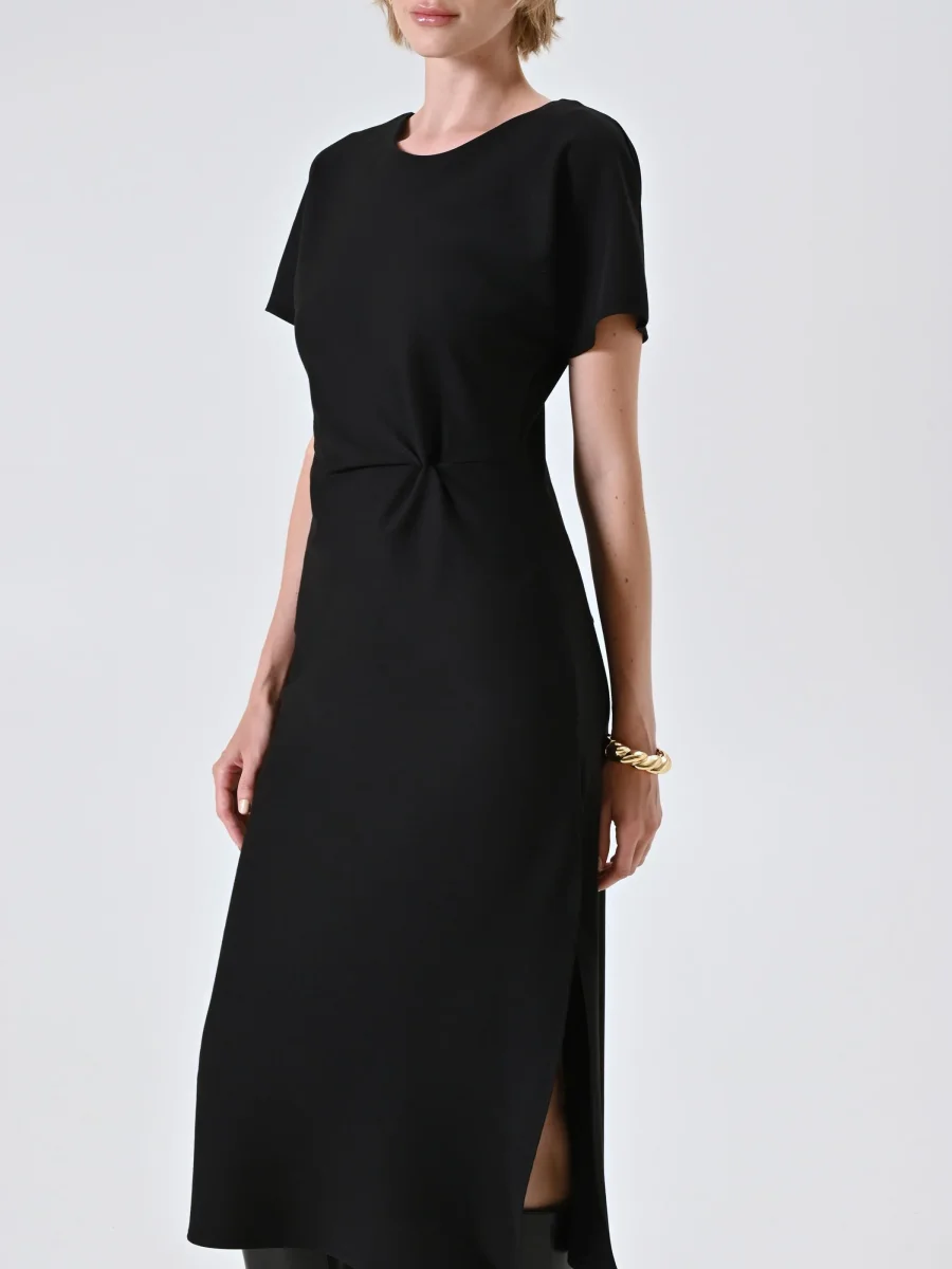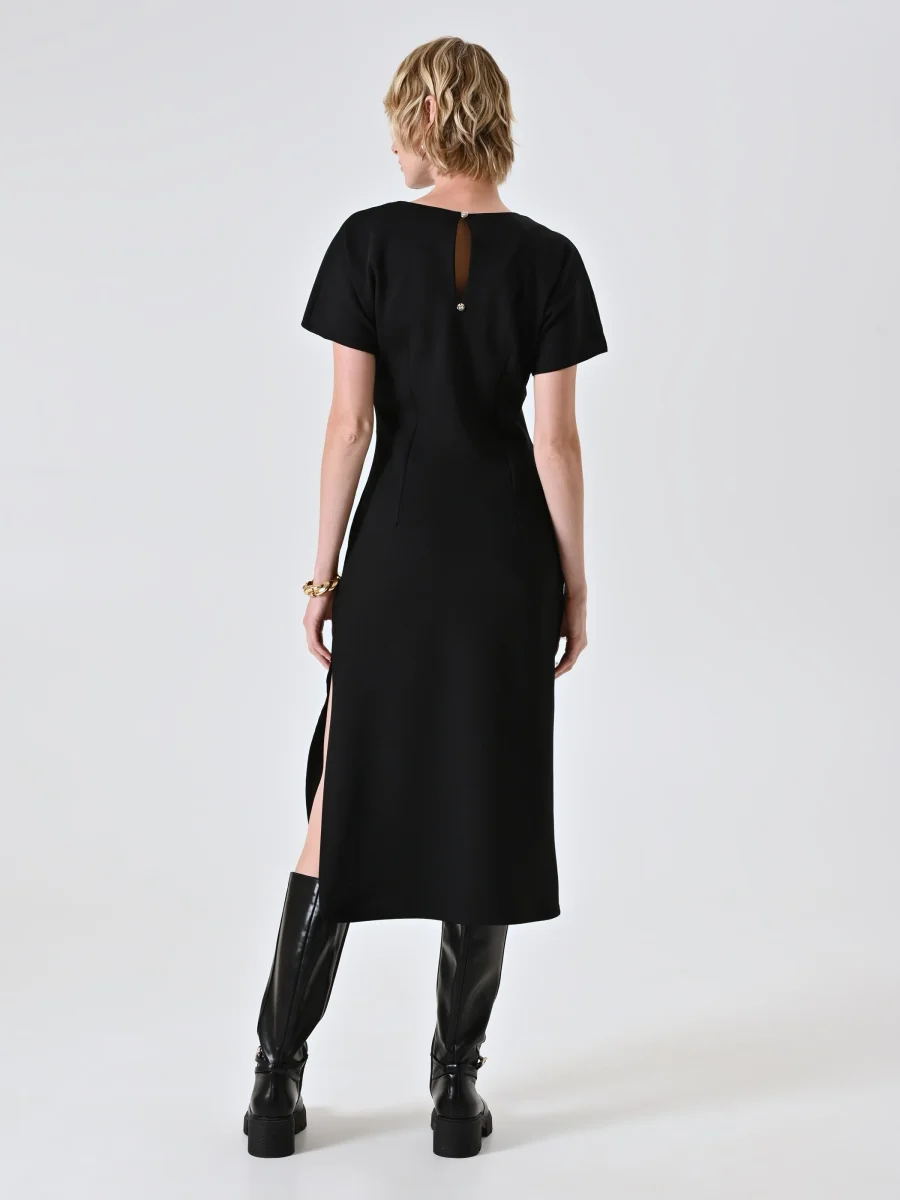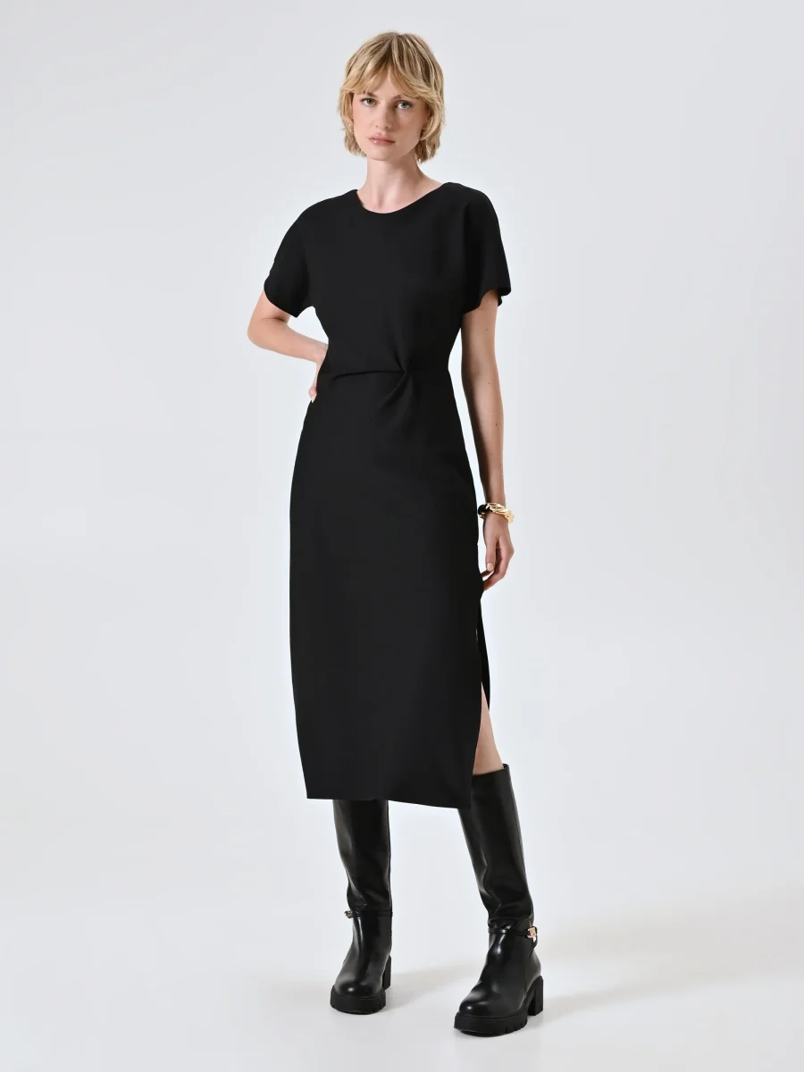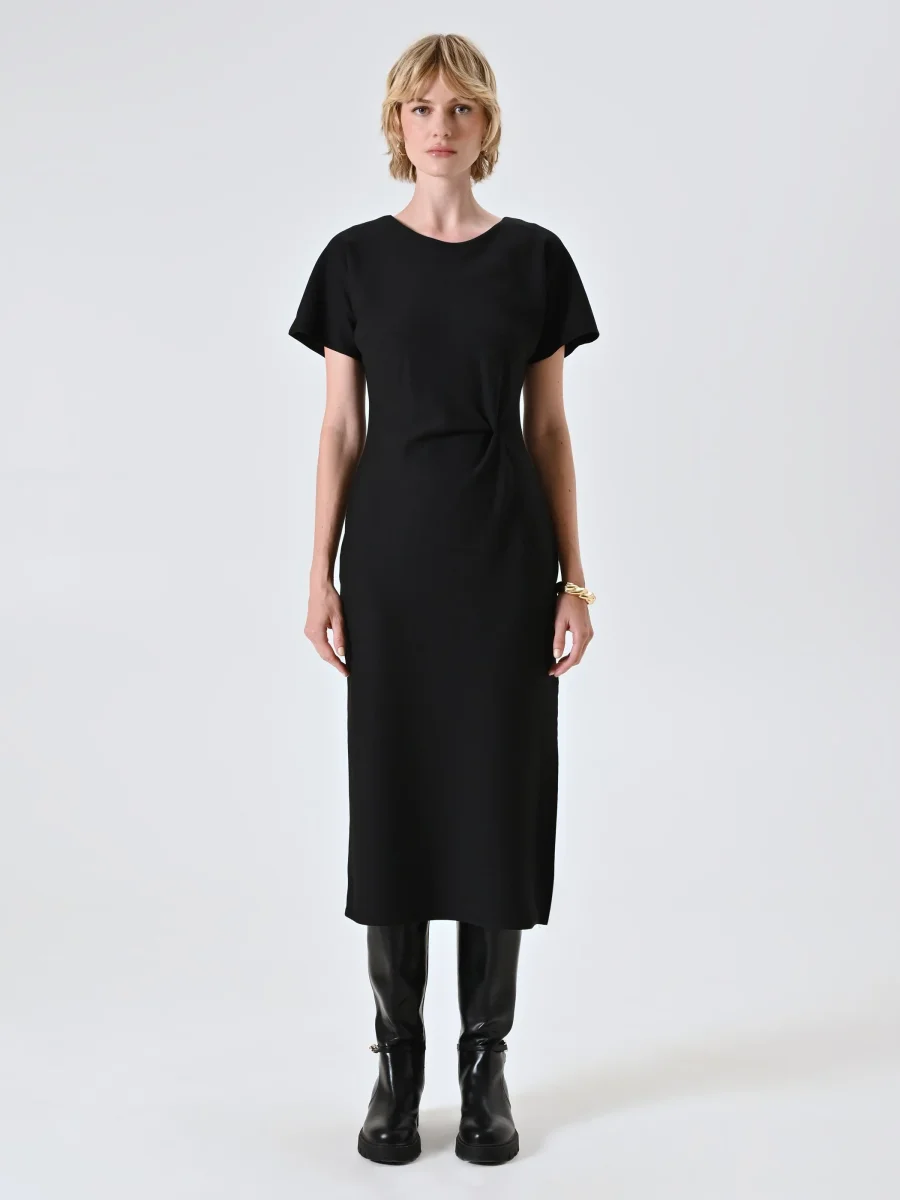 Abito a tubino nero in punto milano con drappeggio