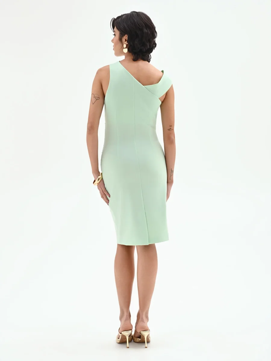 Tubino monospalla drappeggiato verde menta