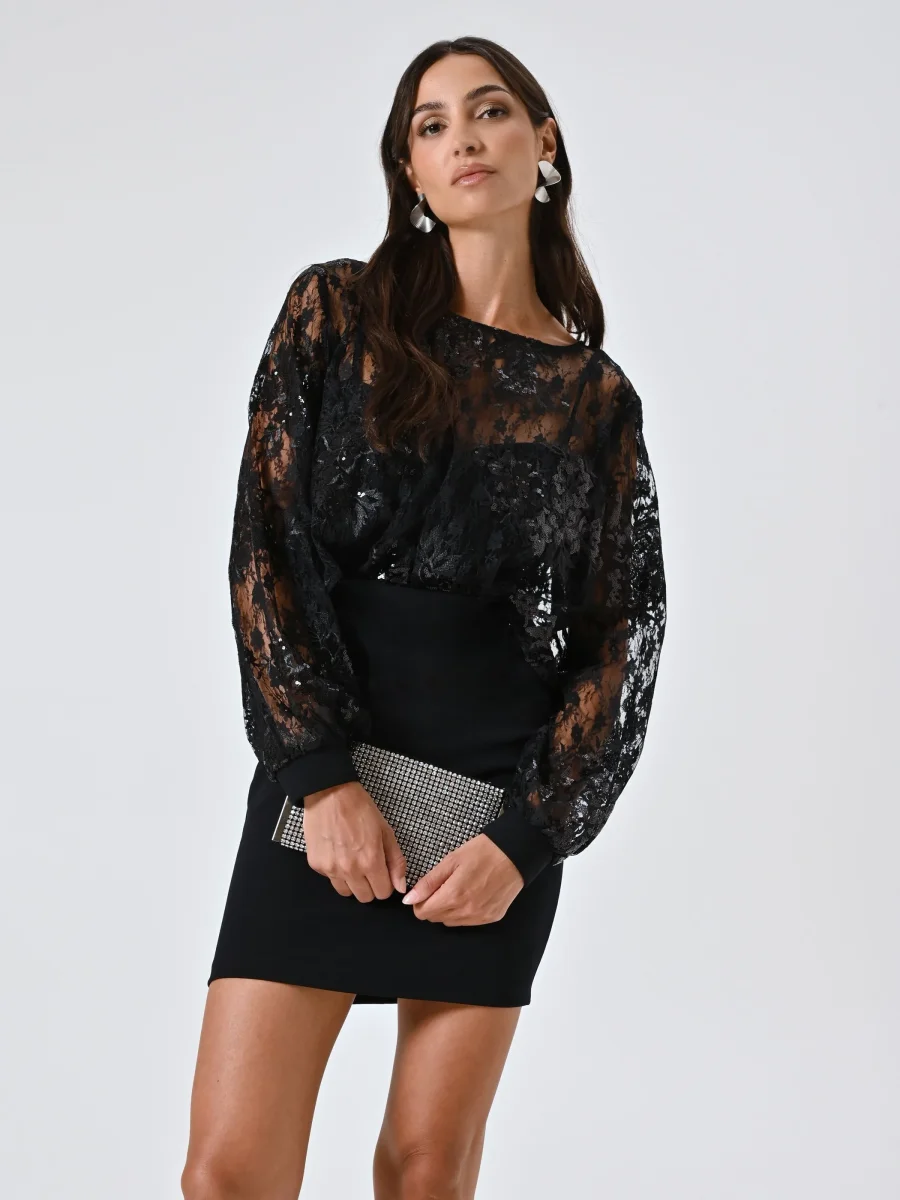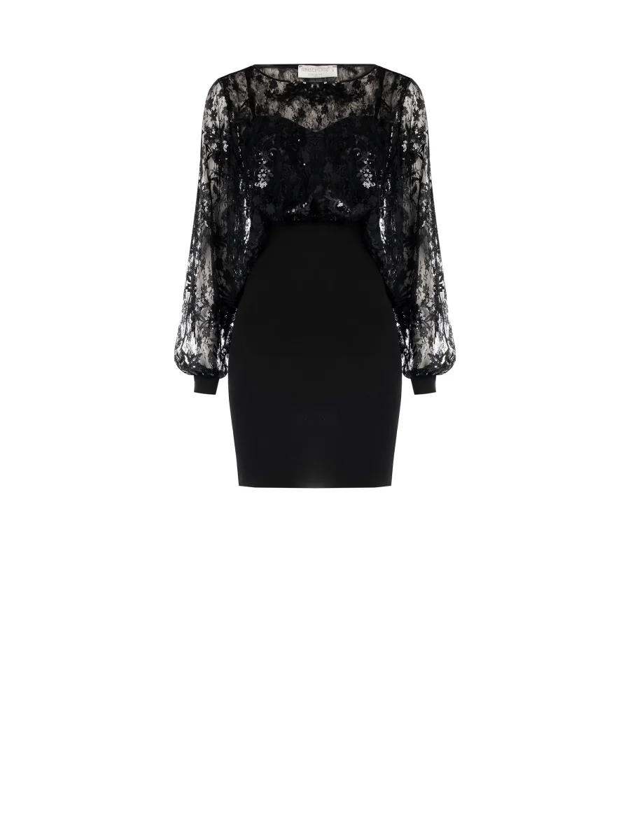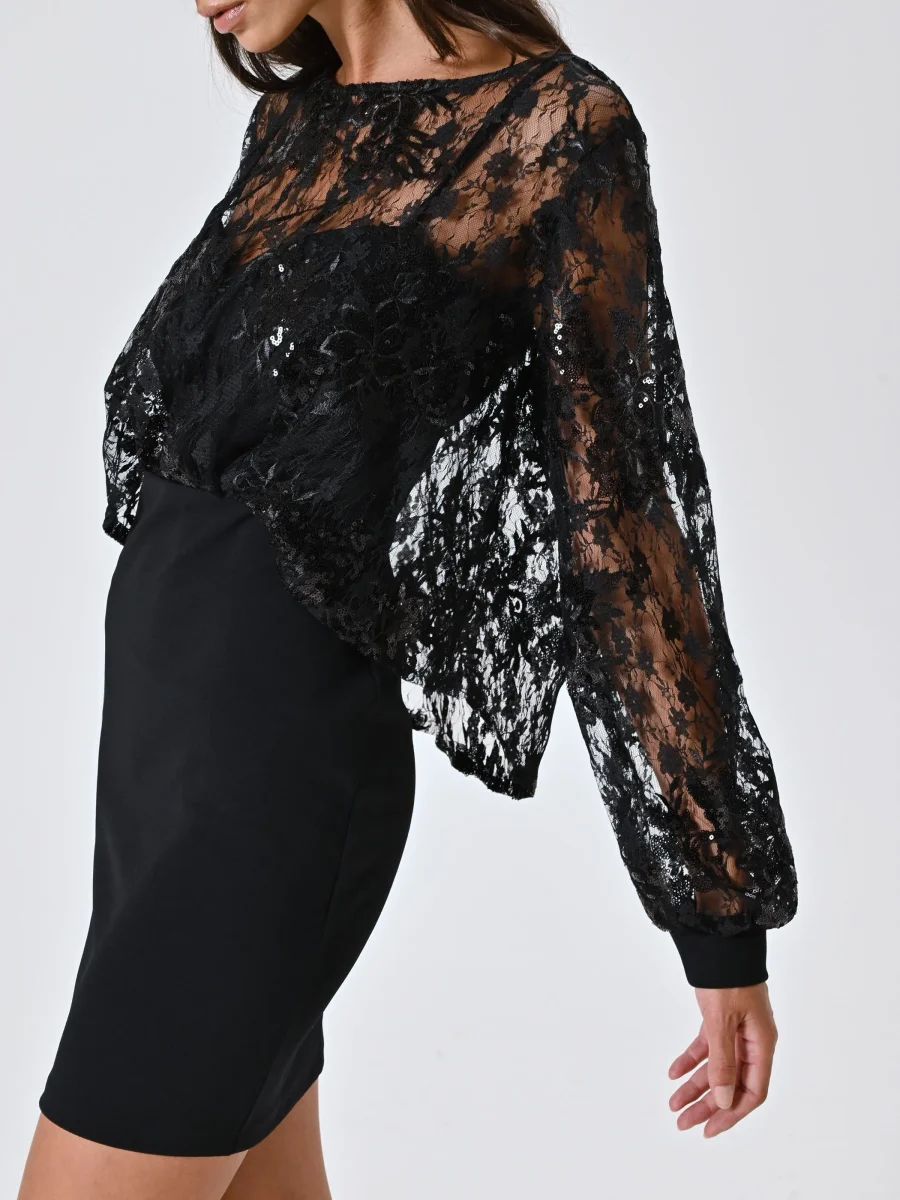 Il Tubino Nero con Blusa Pizzo & Paillettes è un capo raffinato e scintillante, pensato per valorizzare la silhouette femminile con eleganza e originalità.