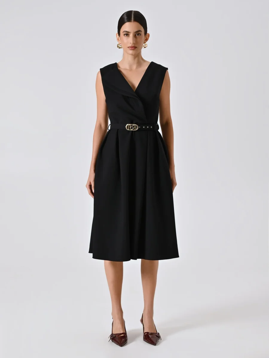 Il Tubino Nero con Doppio Rever è la scelta ideale per chi cerca un look deciso, femminile e adatto alle occasioni speciali.