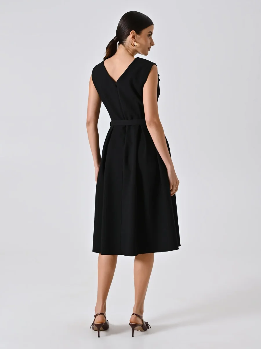 Abito a tubino nero in punto milano con drappeggio