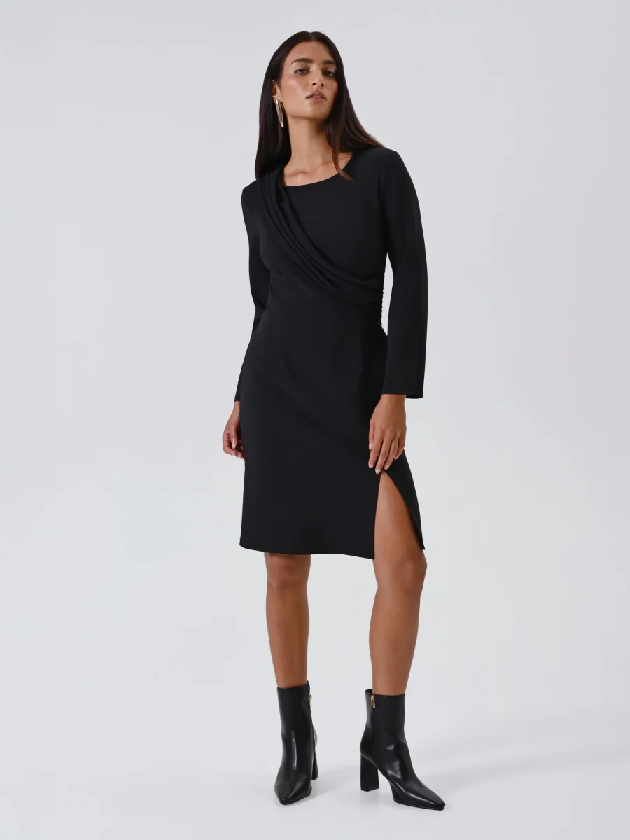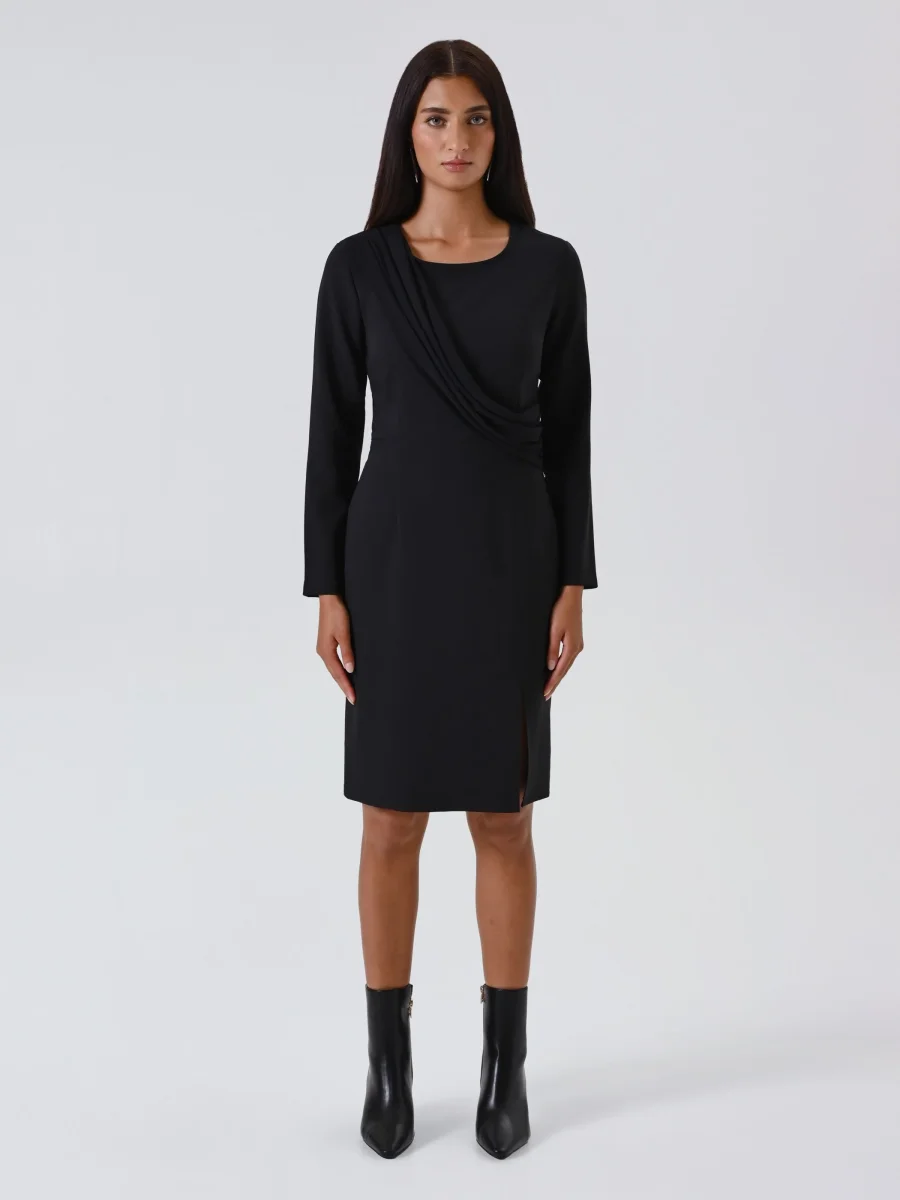 Abito a tubino nero in punto milano con drappeggio
