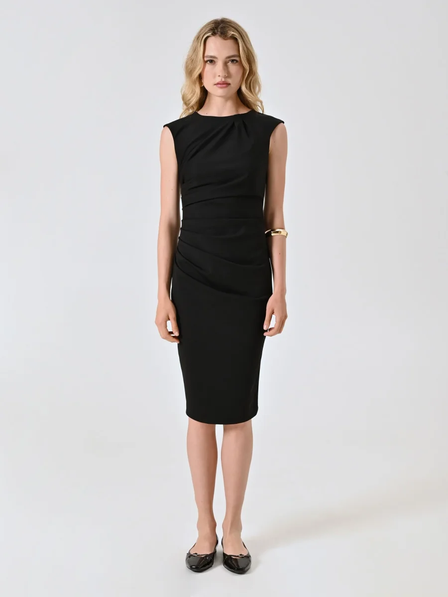 Abito a tubino nero in punto milano con drappeggio