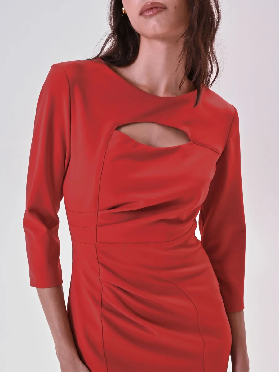 Tubino Rosso in Punto Milano con Dettaglio Cut Out