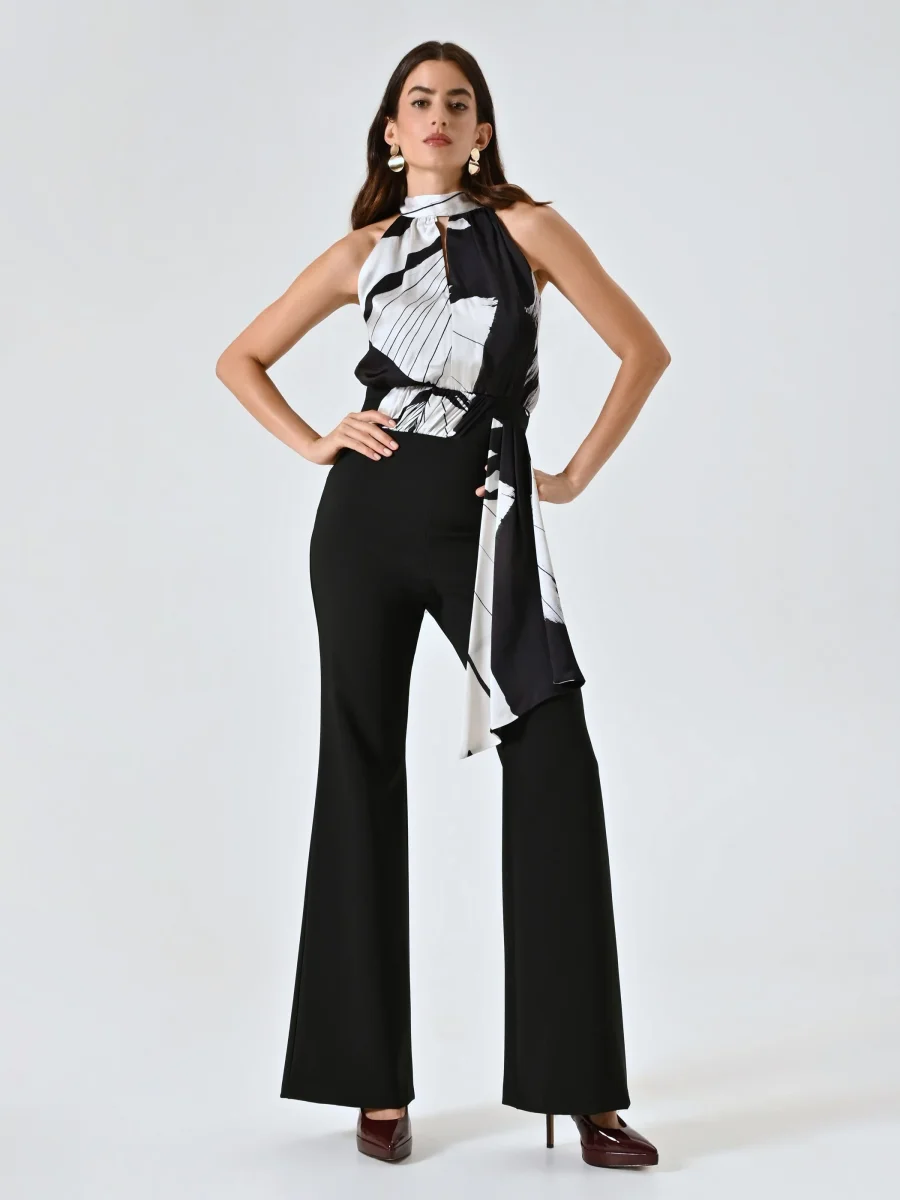 La Tuta con Corpino in Raso Black & White è una proposta elegante e moderna, pensata per distinguersi nelle occasioni speciali. Realizzata in raso stampato e tessuto tecnico, la Tuta con Corpino in Raso Black & White presenta un raffinato corpino con scollo halter e drappo fluido, abbinato a pantaloni in tessuto tecnico dal taglio essenziale. La chiusura con zip posteriore assicura una vestibilità comoda e una linea pulita. La Tuta con Corpino in Raso Black & White si indossa per eventi serali e party ricercati, e si completa con calzature e accessori di collezione. Per un fit impeccabile scegli la collezione Lingerie Rinascimento.