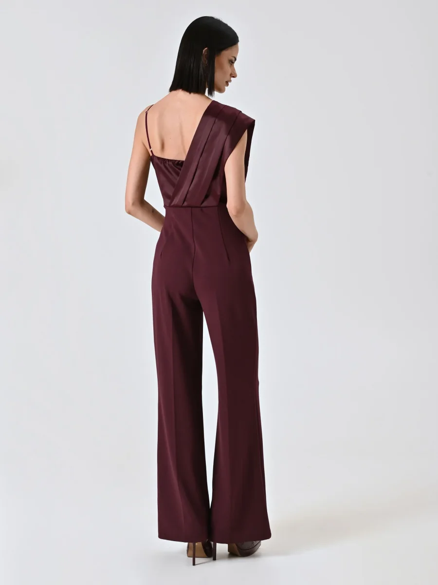 La Tuta Monospalla Bordeaux è una proposta elegante e ricercata, ideale per distinguersi con stile nelle occasioni speciali.