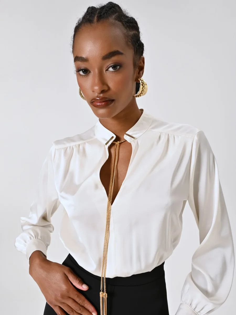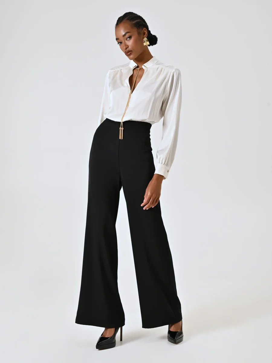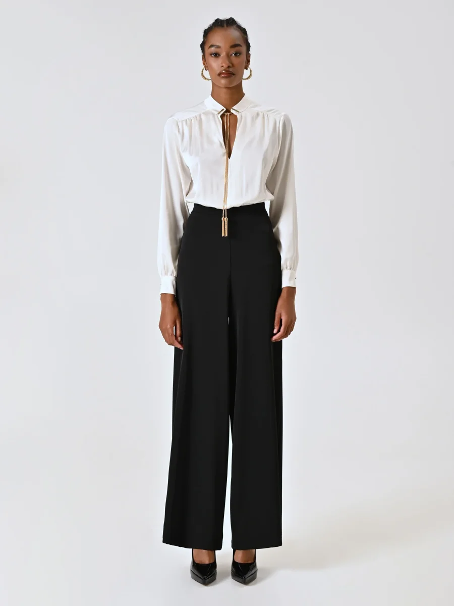 La Tuta Palazzo Bicolor è una proposta elegante e sofisticata, pensata per distinguersi nelle occasioni speciali. Realizzata con una blusa in raso fluido e pantaloni in cadi dalla linea ampia e morbida, la Tuta Palazzo Bicolor presenta maniche lunghe con polsino, un decoro gioiello removibile che illumina il décolleté e una chiusura posteriore con delicati bottoncini. La Tuta Palazzo Bicolor è ideale per eventi serali e cerimonie importanti: completala con calzature e accessori di collezione per un look impeccabile e, per una vestibilità perfetta, scegli la collezione Lingerie Rinascimento. La Tuta Palazzo Bicolor è Made in Italy. La modella è alta 1,77 m e indossa la taglia S.