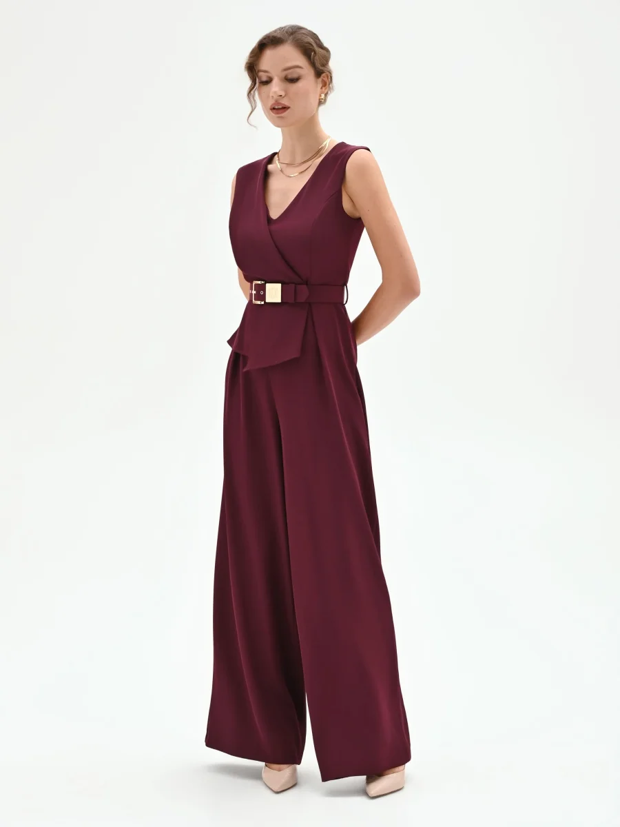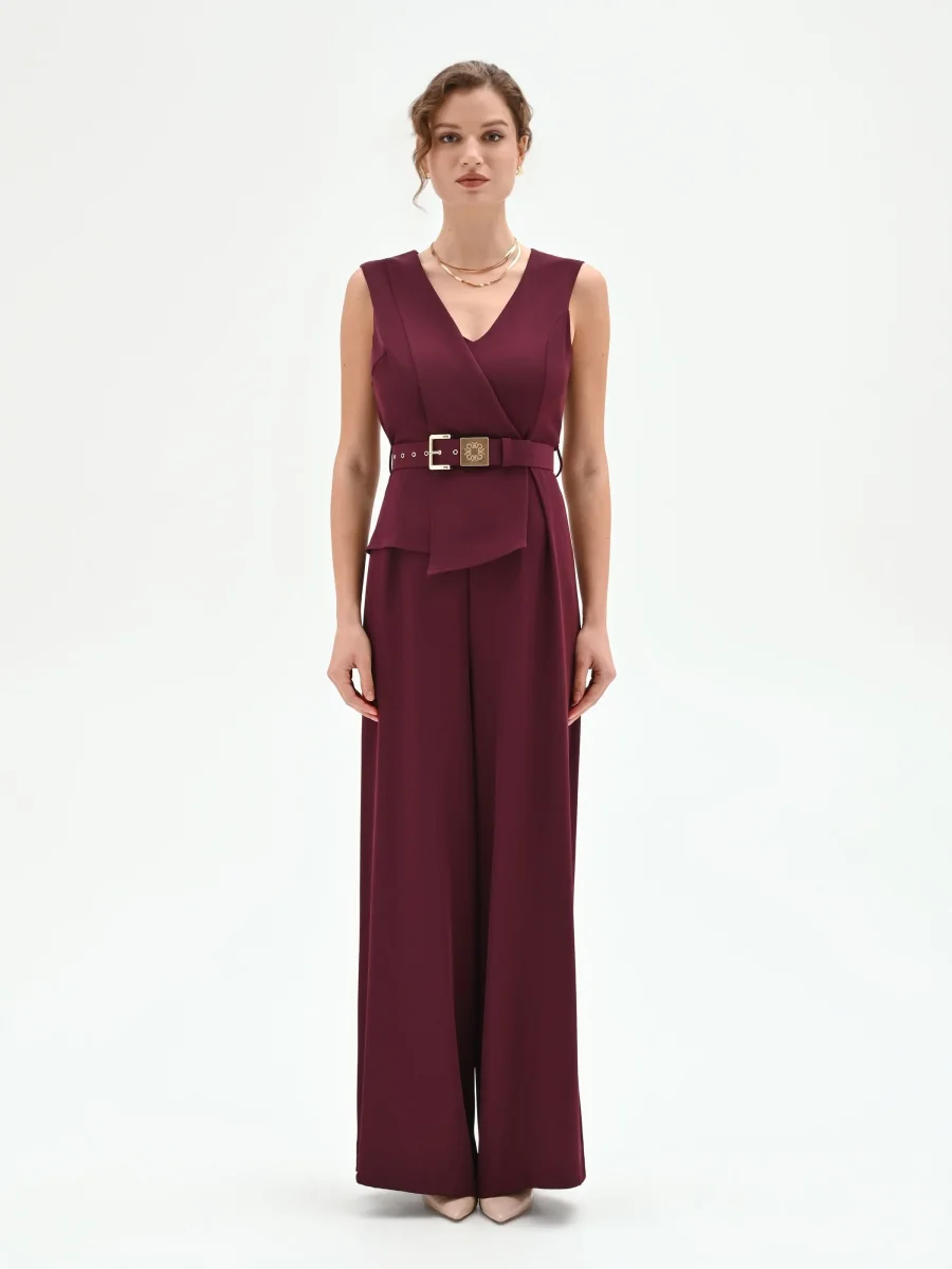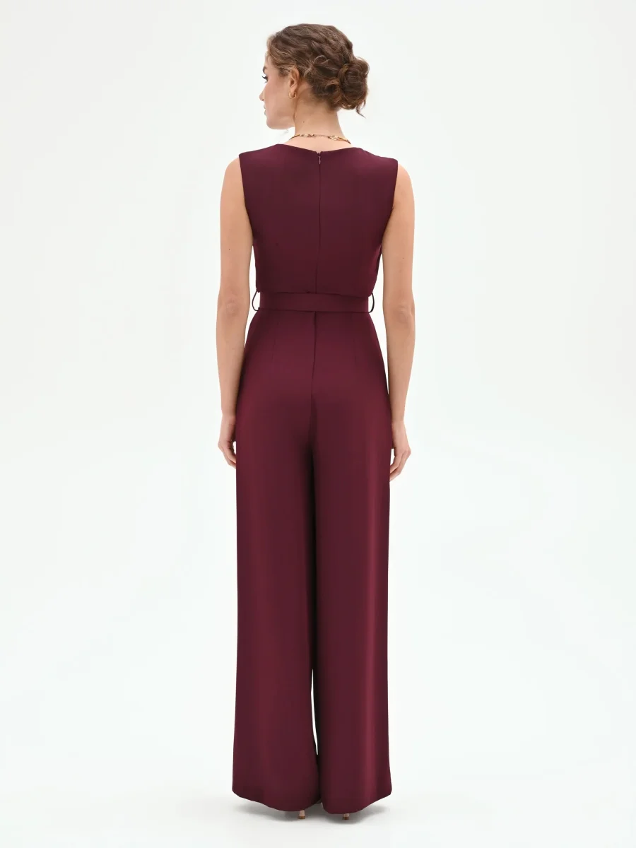 Soyez le premier à laisser votre avis sur “Tuta palazzo bordeaux in cadi con cintura”